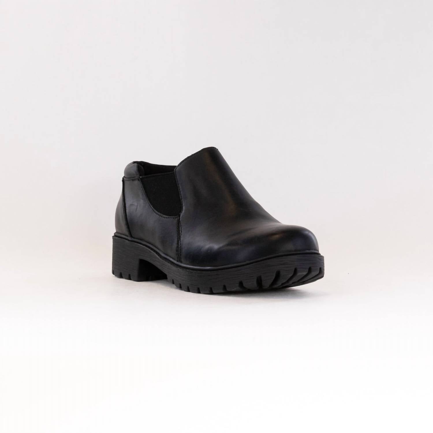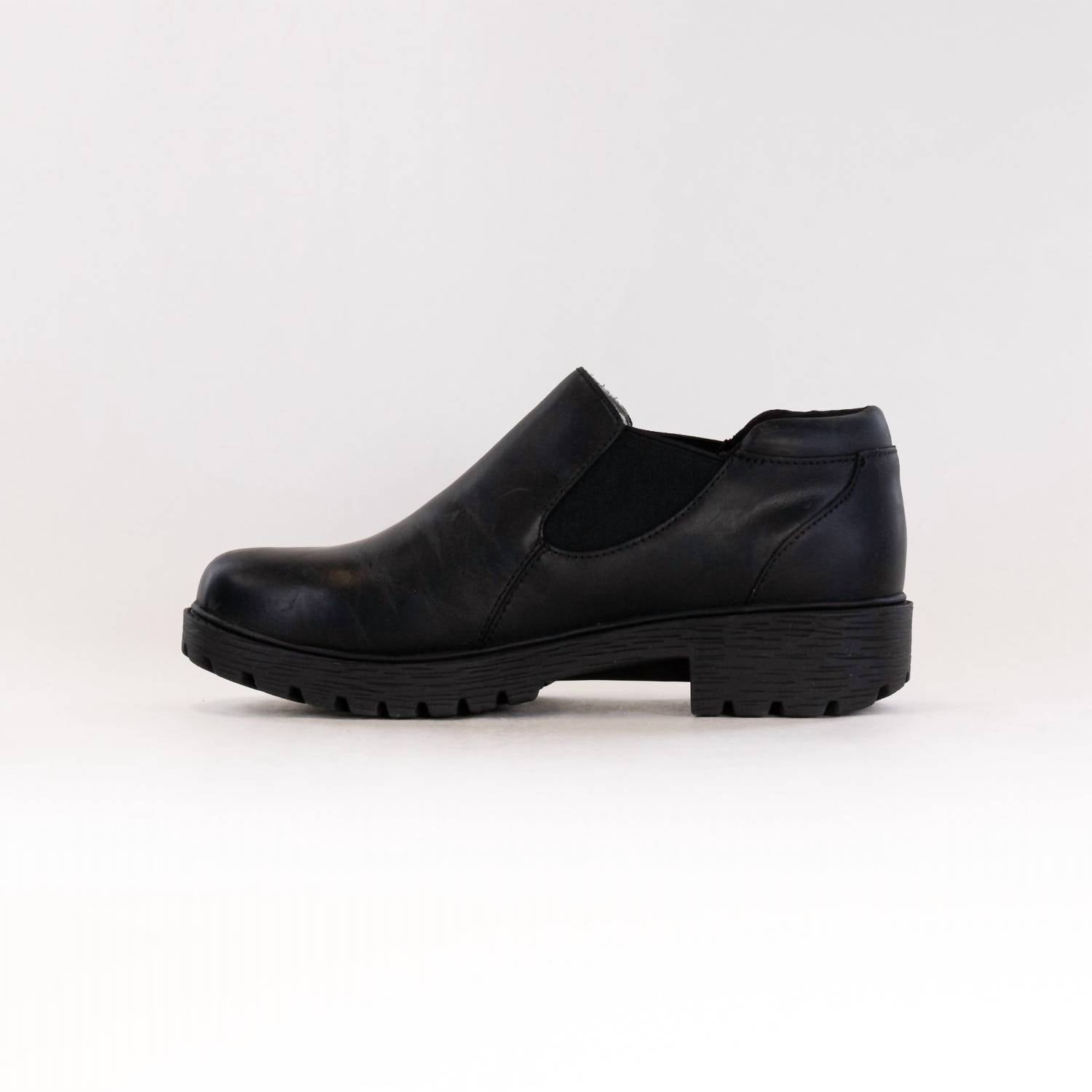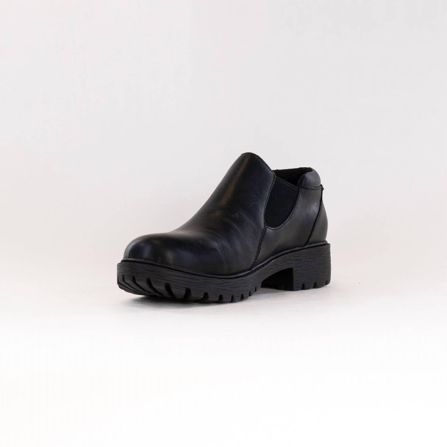 Elevate your style with the Alegria Women's Ramona Leather Ankle Boots in chic oiled black. These boots feature a sleek narrow toe box and a padded collar for comfort, paired with the practicality of double elastic gores. Crafted with a leather upper and lining, they boast a removable suede leather footbed and a slip-resistant Luxe Lug outsole. With a stable 1.75" block heel, these are perfect for everyday wear.