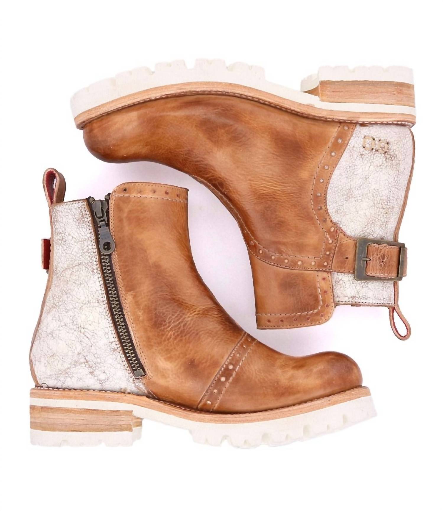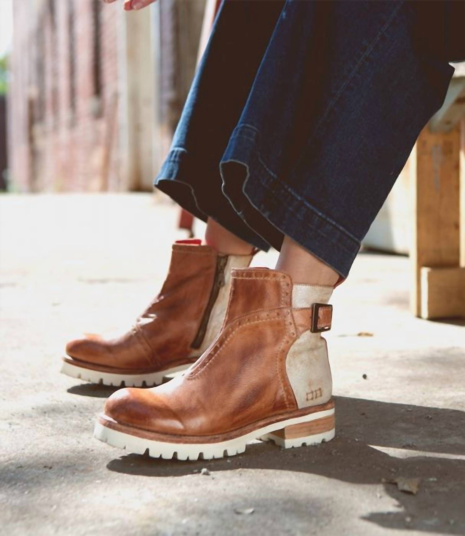 Say hello to the perfect, most versatile boot. The ankle height makes this style easily transition from day to night. Wear them with your favorite skinny jeans and tee for a more laid back look, or pair them with your favorite mini dress and jacket for a night out on the town. The Women's Brianna Leather Boots by BEDSTU combine style and comfort with their vegetable tanned leather in Tan Rustic Nectar Lux. These ankle boots feature circular perforations, contrast topstitching, and a polished YKK® inner zipper for easy wear, along with an adjustable ankle buckle. The 1.5-inch block heel and 1-inch platform ensure all-day wearability with an XL EXTRALIGHT® flexible and shock-absorbing lug outsole. Handmade in Leon, Mexico, these boots are lined with red leather and offer a padded insole for added comfort.