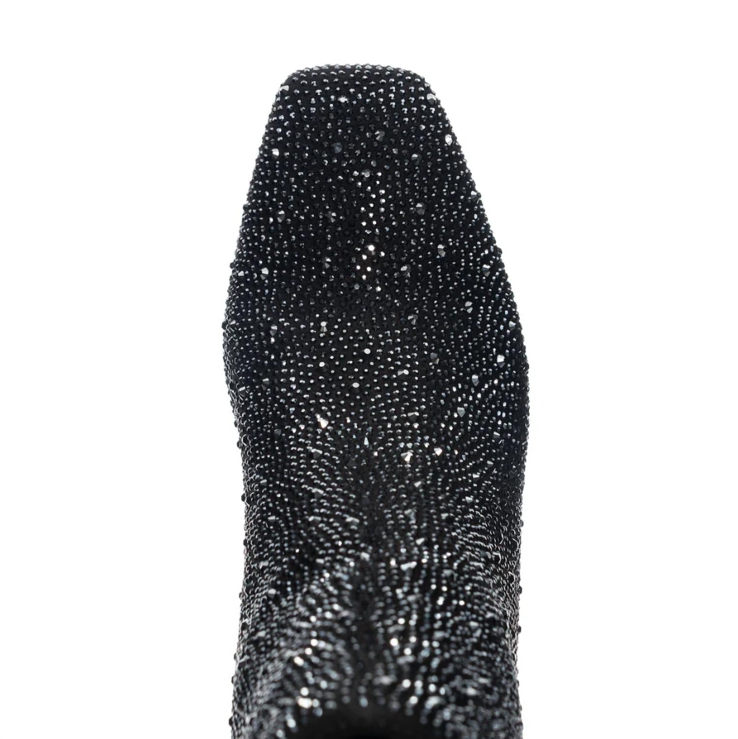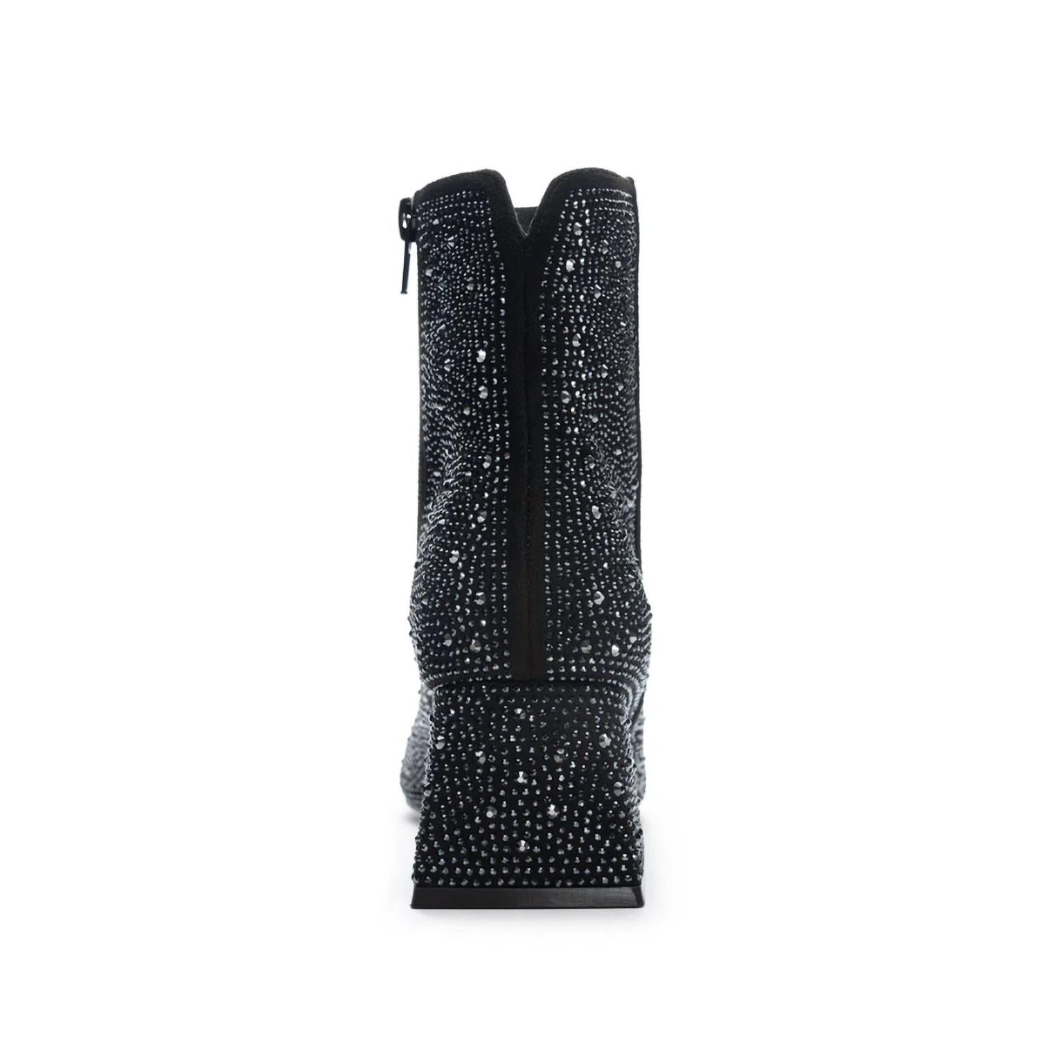 Say hello to the perfect, most versatile boot. The ankle height makes this style easily transition from day to night. Wear them with your favorite skinny jeans and tee for a more laid back look, or pair them with your favorite mini dress and jacket for a night out on the town. Channel elegance with the Women's Diya Dress Bootie by Chinese Laundry, a standout piece in classic black. Crafted from luxurious suede and manmade materials, these ankle boots boast a mid-ankle height and a subtly square toe. The 2.25" block heel offers a perfect lift, while shimmering rhinestones add a touch of glamour. Featuring a side zipper for easy wear, they're an ideal choice for elevating any outfit.