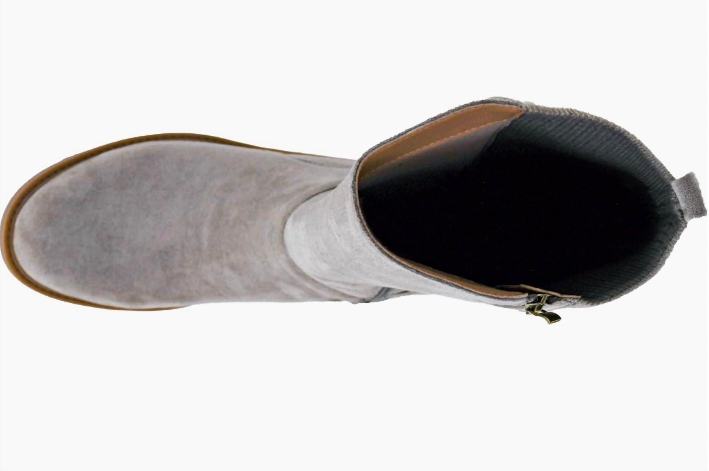Say hello to the perfect, most versatile boot. The ankle height makes this style easily transition from day to night. Wear them with your favorite skinny jeans and tee for a more laid back look, or pair them with your favorite mini dress and jacket for a night out on the town. Step into style with the Women's Hay There Faux Suede Boots by Corkys Footwear, crafted from high-quality faux suede in a chic grey shade. These ankle boots feature a round toe and a trendy chunky heel with a height of 1.25 inches, perfect for adding just the right amount of lift. Ideal for fall occasions such as Thanksgiving, they bring a vintage flair to your wardrobe that is both fashion-forward and versatile. Designed for women, these boots are a great choice for a holiday party, ensuring comfort and sophistication all day long.