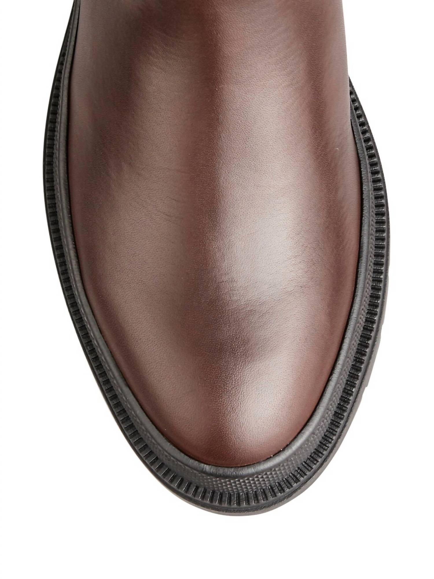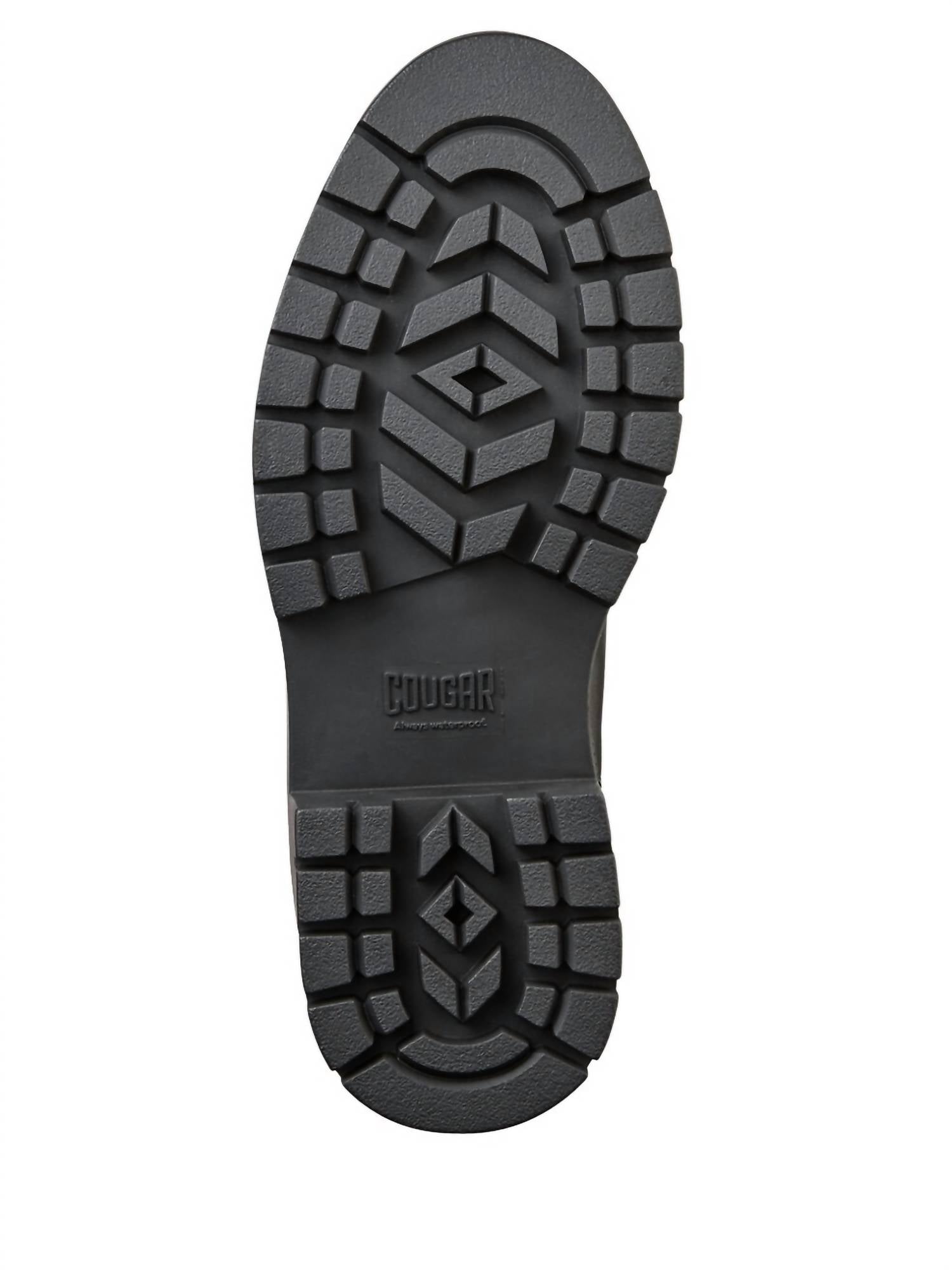 Waterproof leather upper. Round toe. Double elastic gore closure. Polar plush lining. Removable moulded foam insole. TPR sole. Spot clean with a damp cloth. Fits true to size. Platform height, 1.5". Shaft height, 5.5". Leg opening, about 10.5".