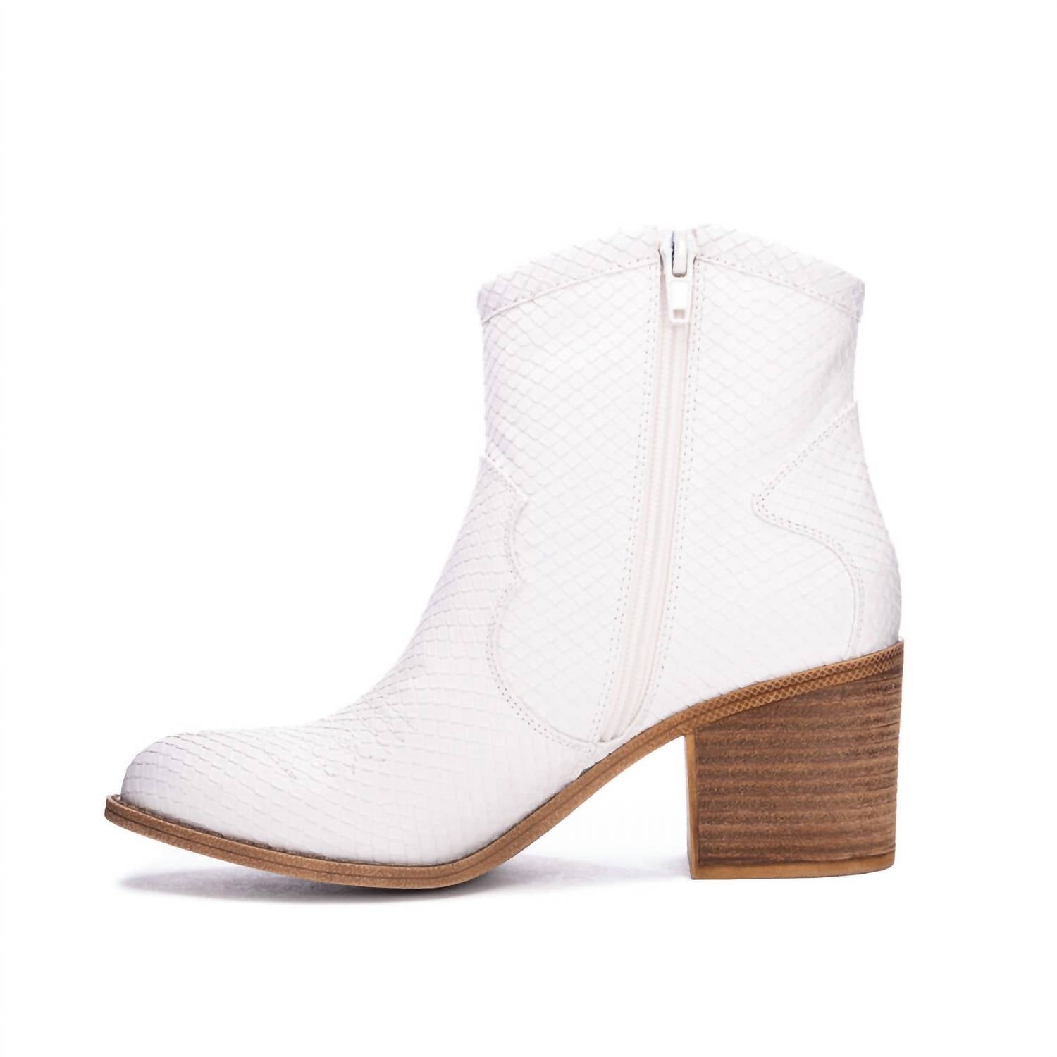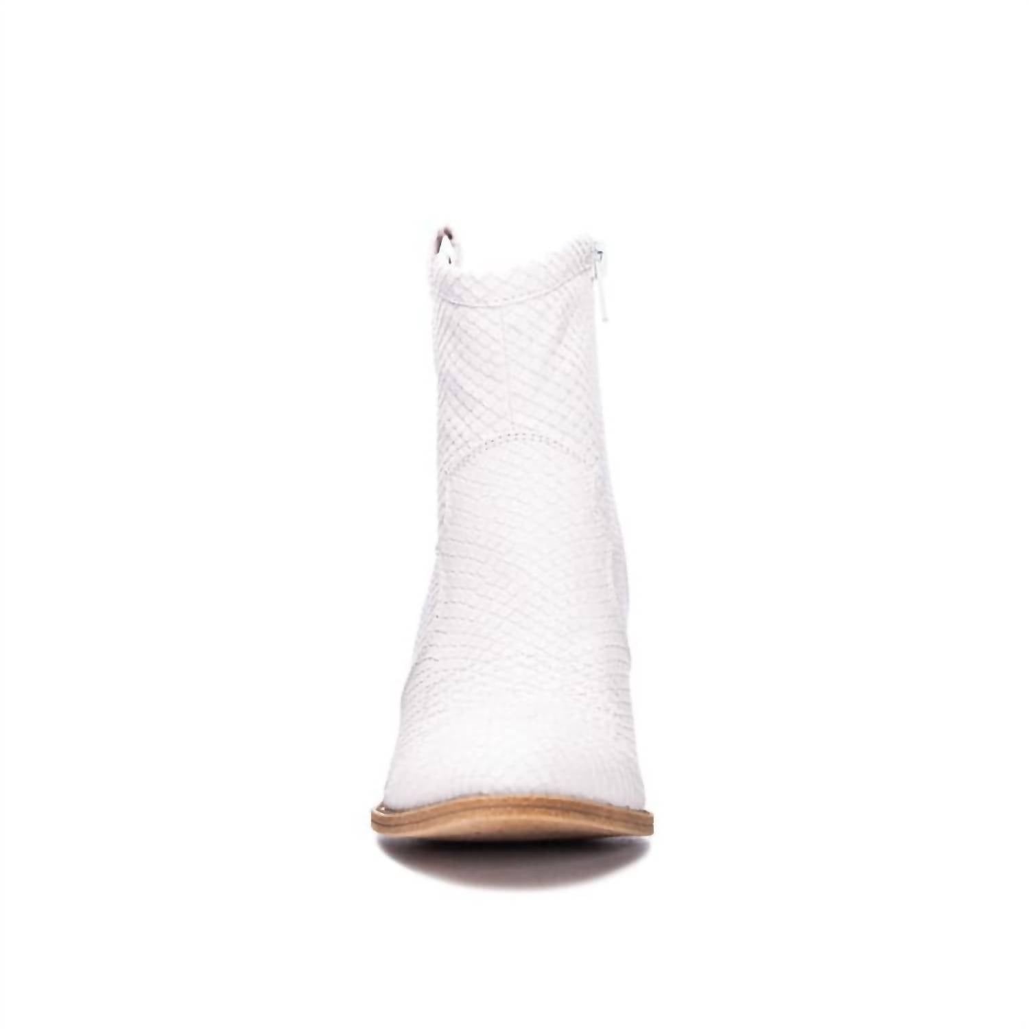 Say hello to the perfect, most versatile boot. The ankle height makes this style easily transition from day to night. Wear them with your favorite skinny jeans and tee for a more laid back look, or pair them with your favorite mini dress and jacket for a night out on the town.For your inner space cowgirl, welcome the Unite Western bootie into your atmosphere. In shimmering metallics or pastel supernova hues, with whipstitch detailing, an ankle-height fit, and a low block heel, it's an effortless, out-of-this-galaxy take on a cowboy classic that your world desperately needs. Features: By Dirty Laundry, faux snakeskin pleather upper, Manmade materials throughout, 2.5" heel.