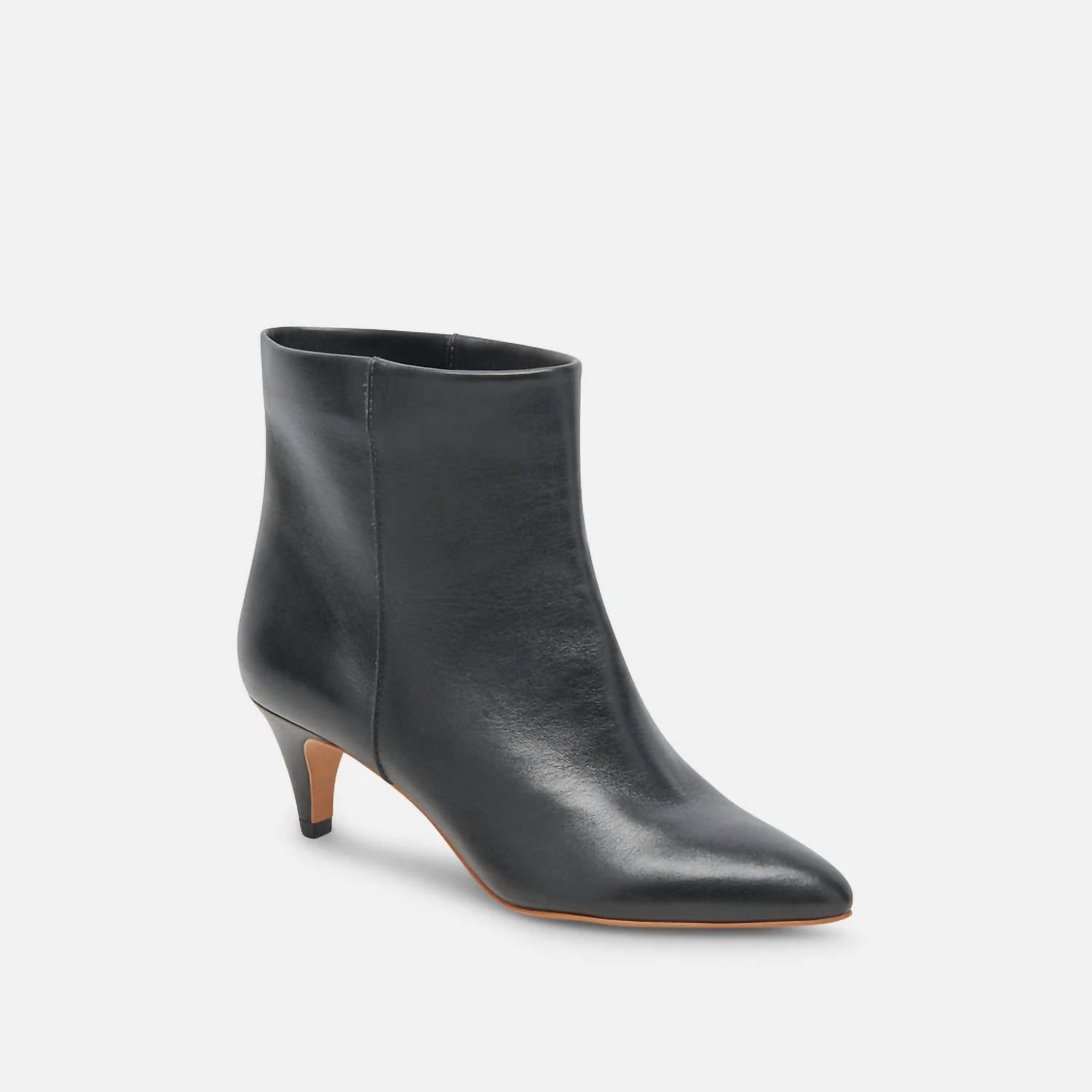Say hello to the perfect, most versatile boot. The ankle height makes this style easily transition from day to night. Wear them with your favorite skinny jeans and tee for a more laid back look, or pair them with your favorite mini dress and jacket for a night out on the town. These booties feature a pointy toe and kitten heel. They have a 2.4" heel and a 6.1" shaft. Made with a leather upper, and a synthetic sole, lining and sock. Imported.