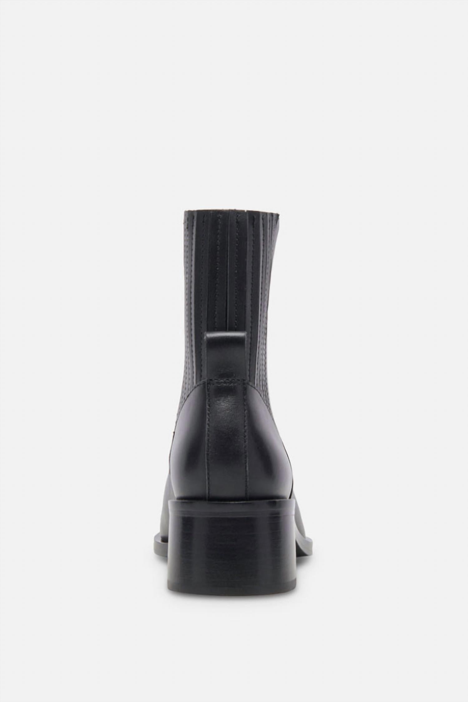 Dolce Vita introduces the Women's Linny H20 Fashion Boots in a stylish black leather hue, designed to be your all-weather go-to. These ankle boots feature a sleek suede upper and almond toe shape, with a comfortable 1.6" block heel. The boots have a 6.3" shaft height and 9.1" leg circumference, while the synthetic outsole and textile lining ensure durability and comfort. Imported and crafted for all-season protection, these boots seamlessly combine fashion and function.