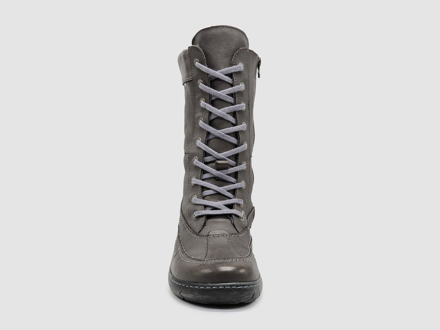 Say hello to the perfect, most versatile boot. The ankle height makes this style easily transition from day to night. Wear them with your favorite skinny jeans and tee for a more laid back look, or pair them with your favorite mini dress and jacket for a night out on the town. Grey color. Tall design. Thick white wool-lined interior for warmth. Integrated zipper for easy slip-on. Made from high-quality natural leather. Lightweight construction. Designed for all-day comfort and wearability. Handcrafted in Poland.