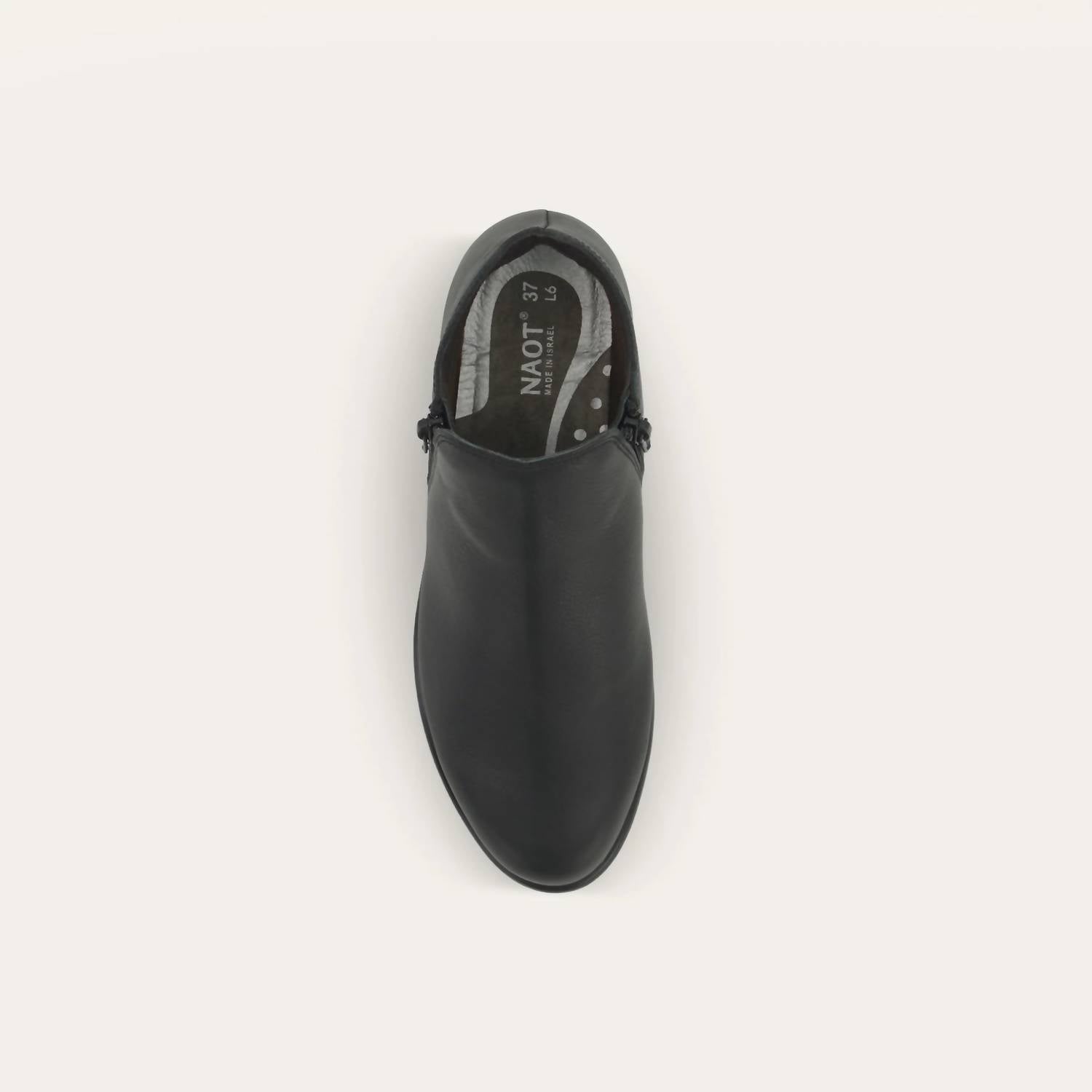 Say hello to the perfect, most versatile boot. The ankle height makes this style easily transition from day to night. Wear them with your favorite skinny jeans and tee for a more laid back look, or pair them with your favorite mini dress and jacket for a night out on the town. Introducing the Naot Women's Helm Water Resistant Leather Boot, a chic and functional option for every dinner party this fall. Made from black leather, these ankle boots feature a convenient double zipper closure, medium shoe width, and a comfortable round toe design. The boots' padded heel cup and instep, alongside a removable cork and latex footbed, ensure exceptional comfort and adaptability. With a minimalist flat heel and lightweight sole reinforced by a metal shank, you're guaranteed both durability and slip resistance. Perfect for the modern woman seeking style and ease.