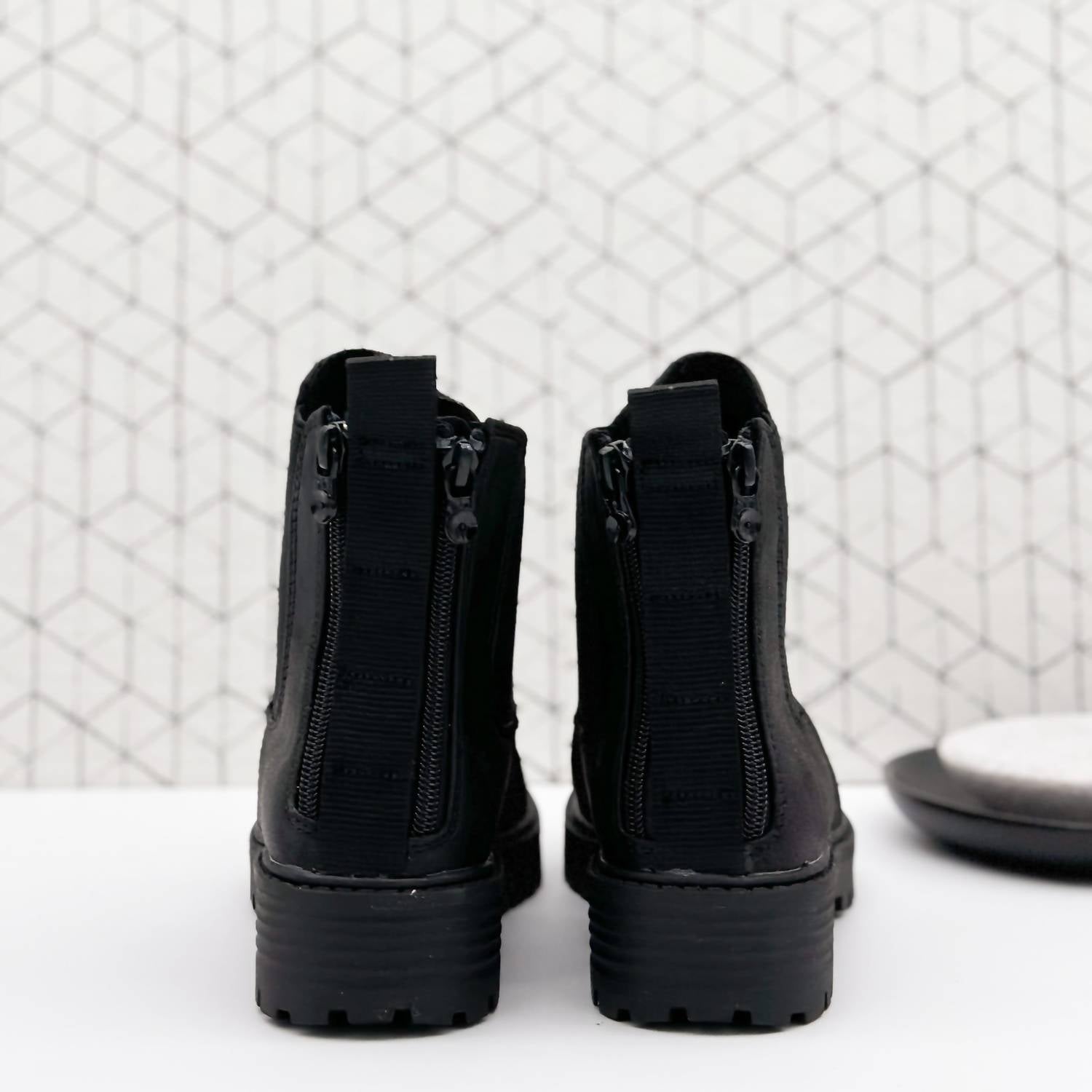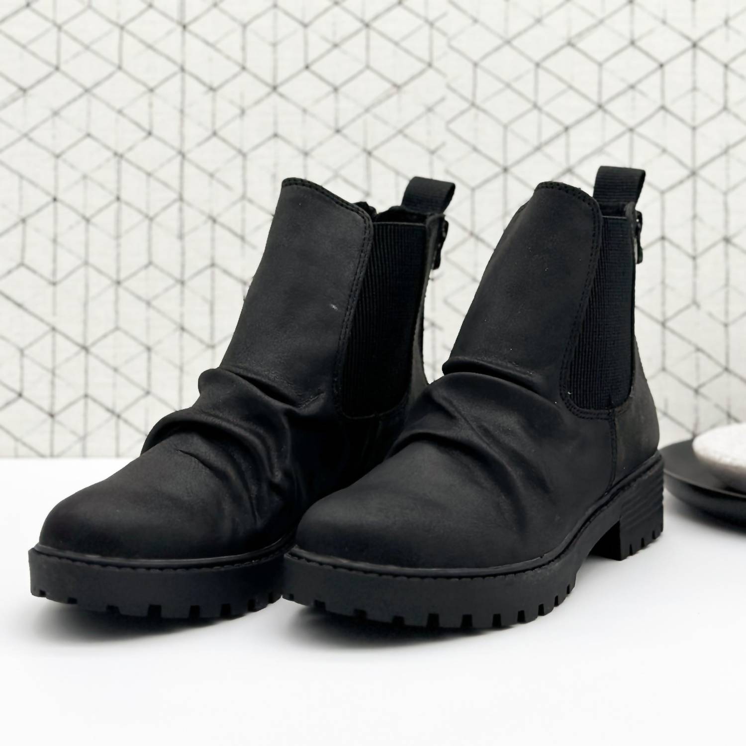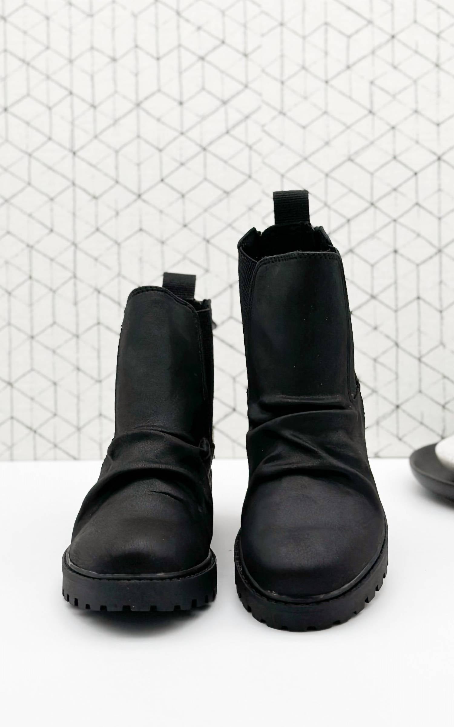 Say hello to the perfect, most versatile boot. The ankle height makes this style easily transition from day to night. Wear them with your favorite skinny jeans and tee for a more laid back look, or pair them with your favorite mini dress and jacket for a night out on the town. Combat boot, the Noble Bootie has a slouched style over the foot with a pull tab and double zippers for easy on and off. Elastic on the shaft provides extra comfort. Faux suede upper. A rugged sole has 1.5 inch heel. Shaft measures 4.5 inches. Double back zip and pull tab. Fits true to size, if in between sizes, go with your larger size.