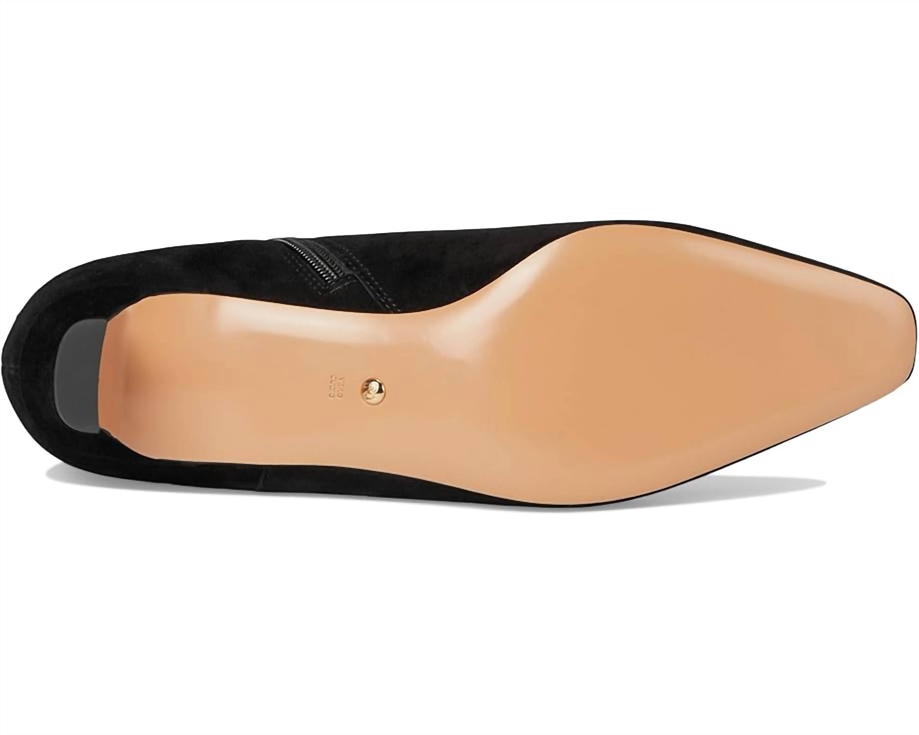 Say hello to the perfect, most versatile boot. The ankle height makes this style easily transition from day to night. Wear them with your favorite skinny jeans and tee for a more laid back look, or pair them with your favorite mini dress and jacket for a night out on the town. Step out in style with the Women's Galia Suede Booties by PELLE MODA, perfect for any holiday party. Crafted from black kid suede with a 1.77-inch block heel, these booties provide the perfect blend of comfort and sophistication. They feature a side zipper closure and a leather outsole, ensuring durability and ease of wear. With a boot shaft height of 4.32 inches and a circumference of 9.34 inches, these booties are a must-have for your fall fashion wardrobe.