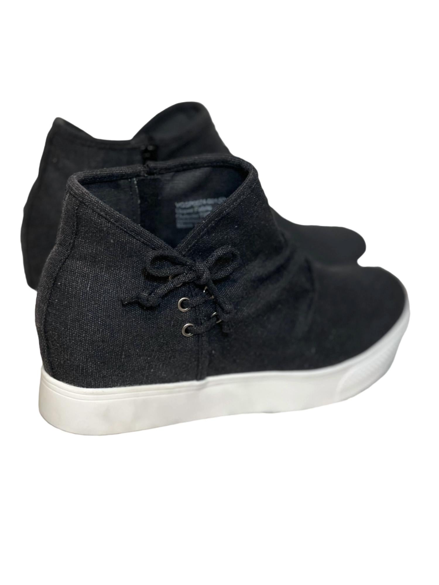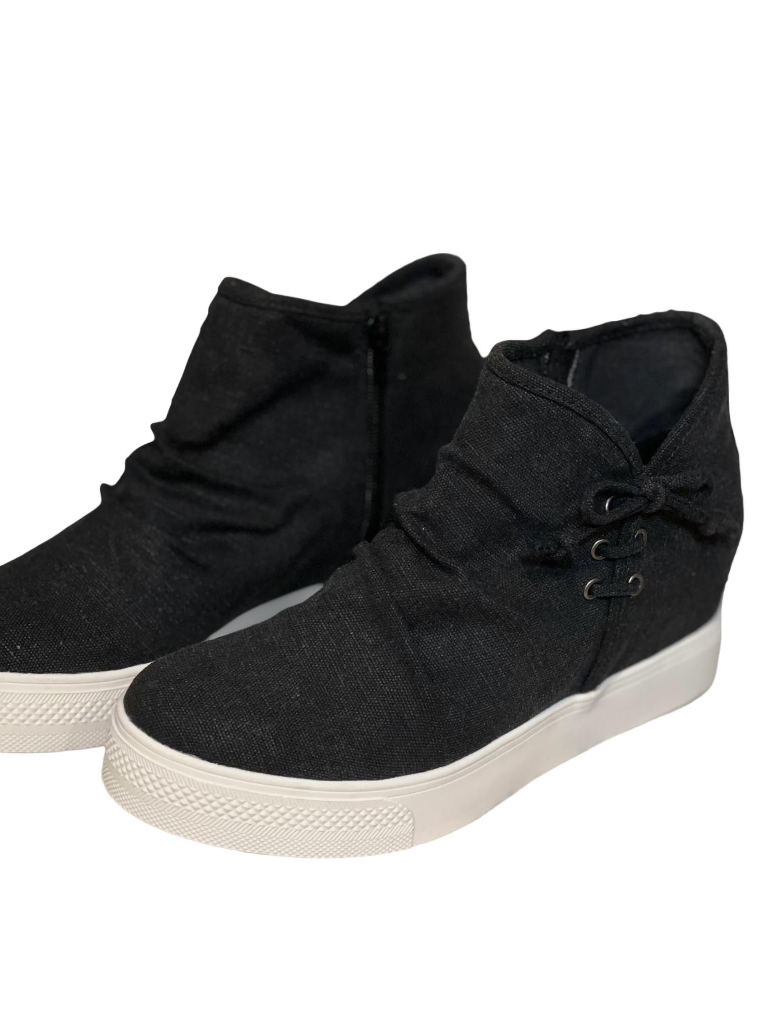 Say hello to the perfect, most versatile boot. The ankle height makes this style easily transition from day to night. Wear them with your favorite skinny jeans and tee for a more laid back look, or pair them with your favorite mini dress and jacket for a night out on the town.This wedge bootie features an ankle-length zip closure and lace tie details on the sides, combining style and functionality for a chic look.