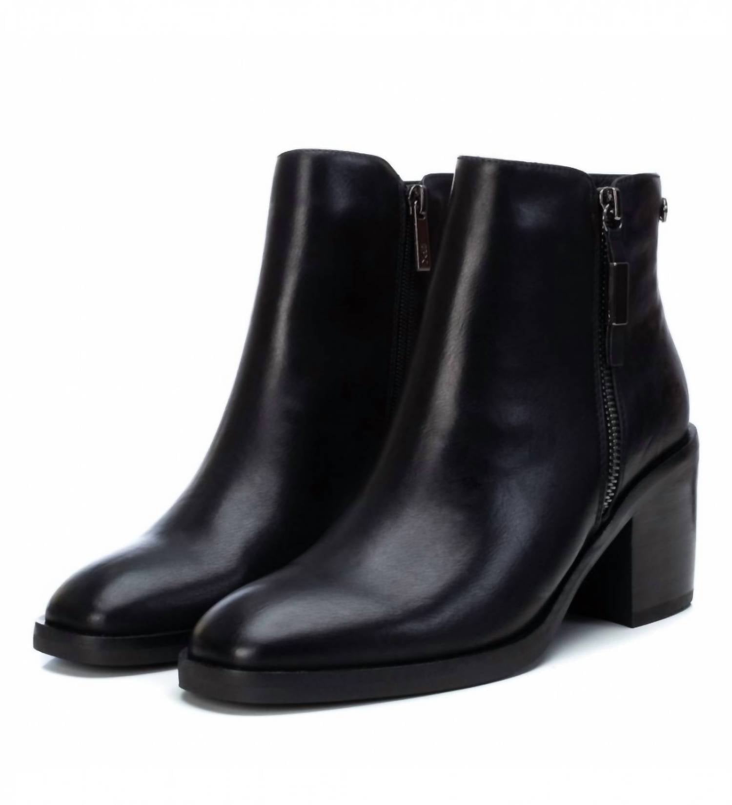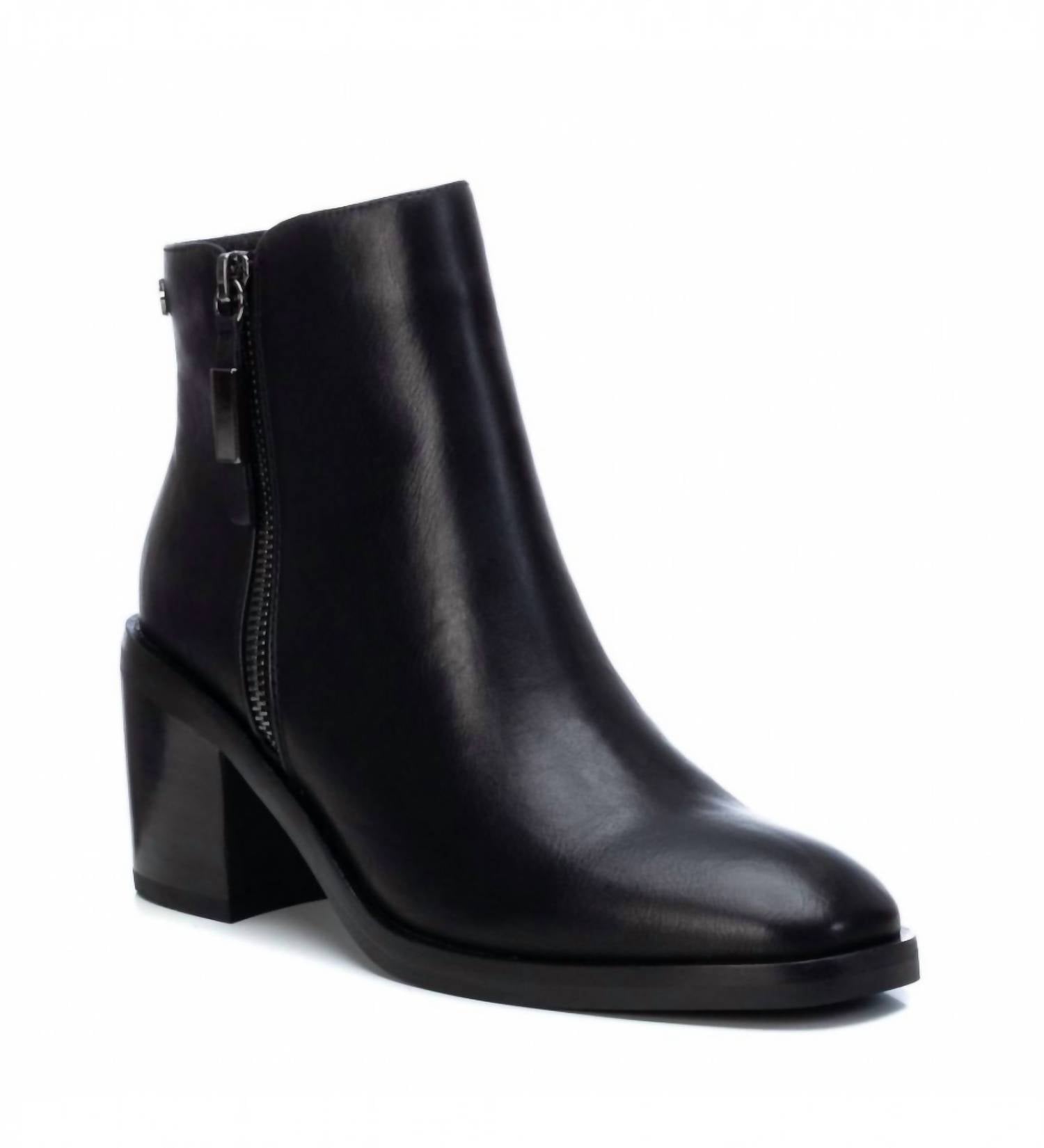Say hello to the perfect, most versatile boot. The ankle height makes this style easily transition from day to night. Wear them with your favorite skinny jeans and tee for a more laid back look, or pair them with your favorite mini dress and jacket for a night out on the town. Crafted from premium material that imitates leather. The internal zip closure provides a sleek look while the decorative side zip adds a fashionable touch. Designed with a lightweight non-slip rubber sole. 2.76-inch heel.