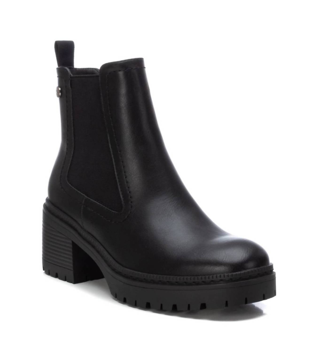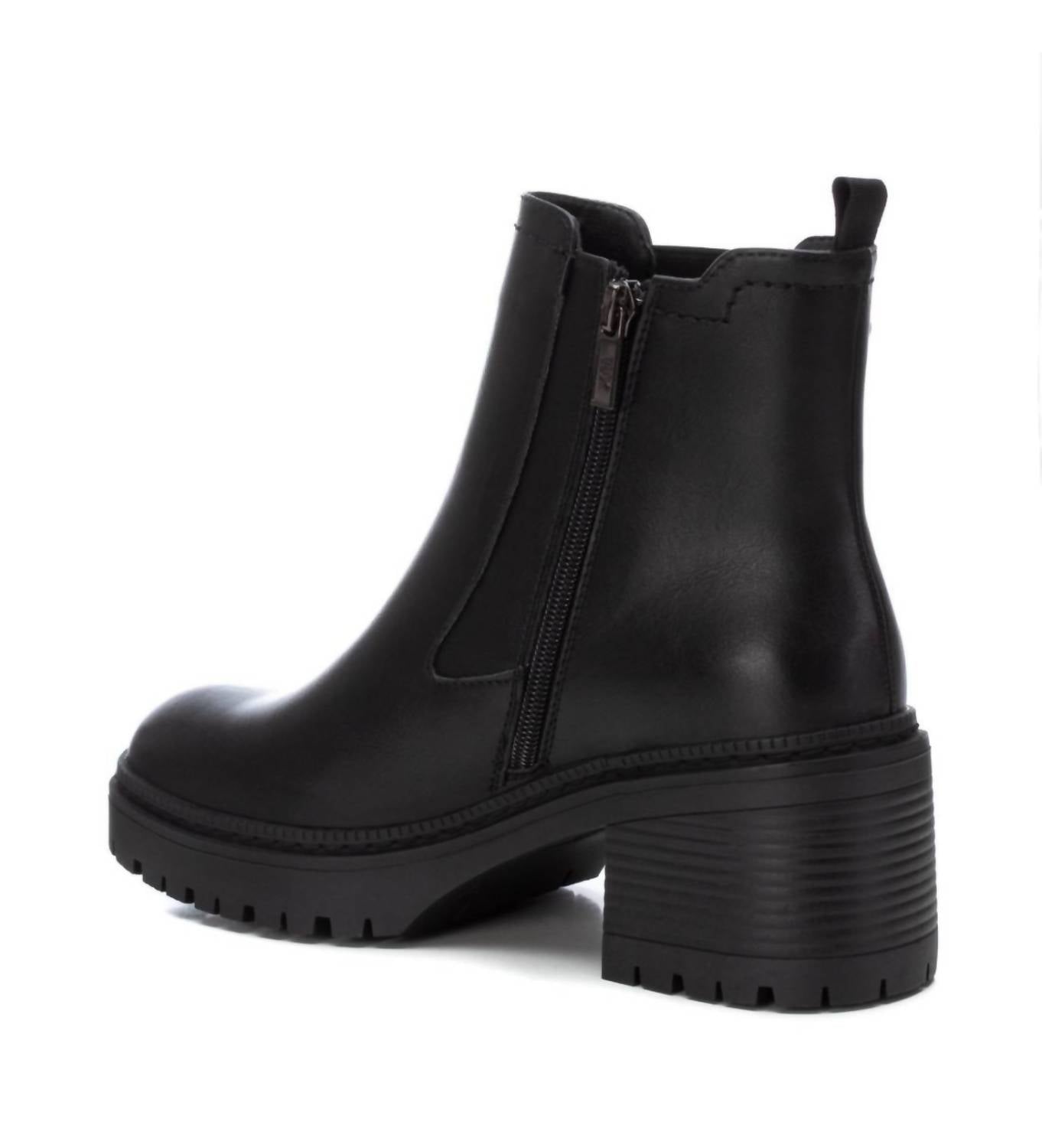 Say hello to the perfect, most versatile boot. The ankle height makes this style easily transition from day to night. Wear them with your favorite skinny jeans and tee for a more laid back look, or pair them with your favorite mini dress and jacket for a night out on the town. This Faux Leather Bootie features a zipper closure, elastic sides, and a mid-height block heel for comfort and flexibility. Its vegan design combines style with a compassionate choice for the eco-conscious.