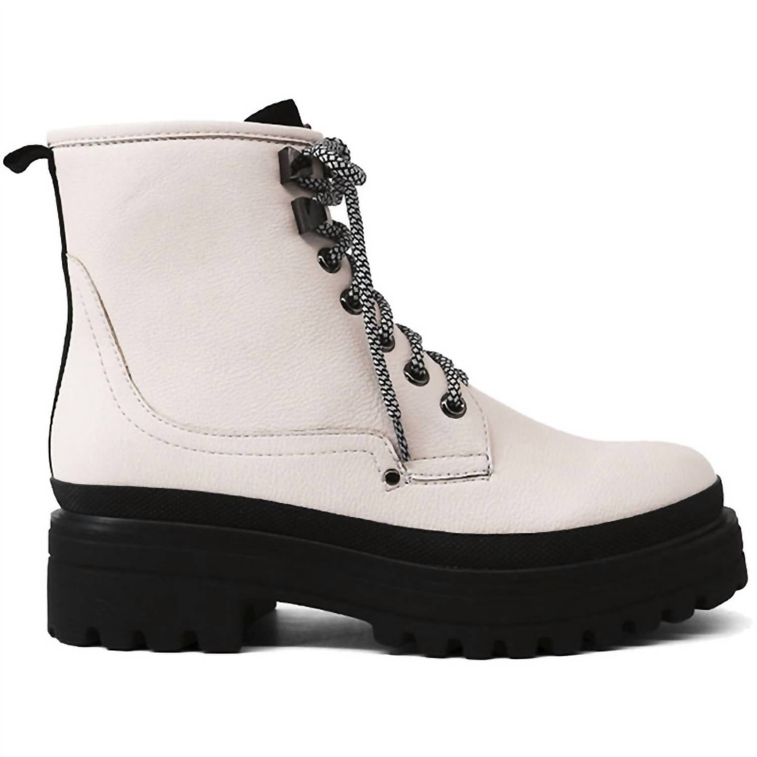 So versatile, you can wear these boots with your favorite jeans or even a dress for a more feminine feel. Step out in style in white, high-top combat boots. Feature a lace-up fit and a closed round toe, ensuring both comfort and edge. Crafted with a sturdy rubber sole. Offer excellent traction and durability. With a low block heel height between 1 1/4" to 2", they combine comfort with a bold, fashionable look.
