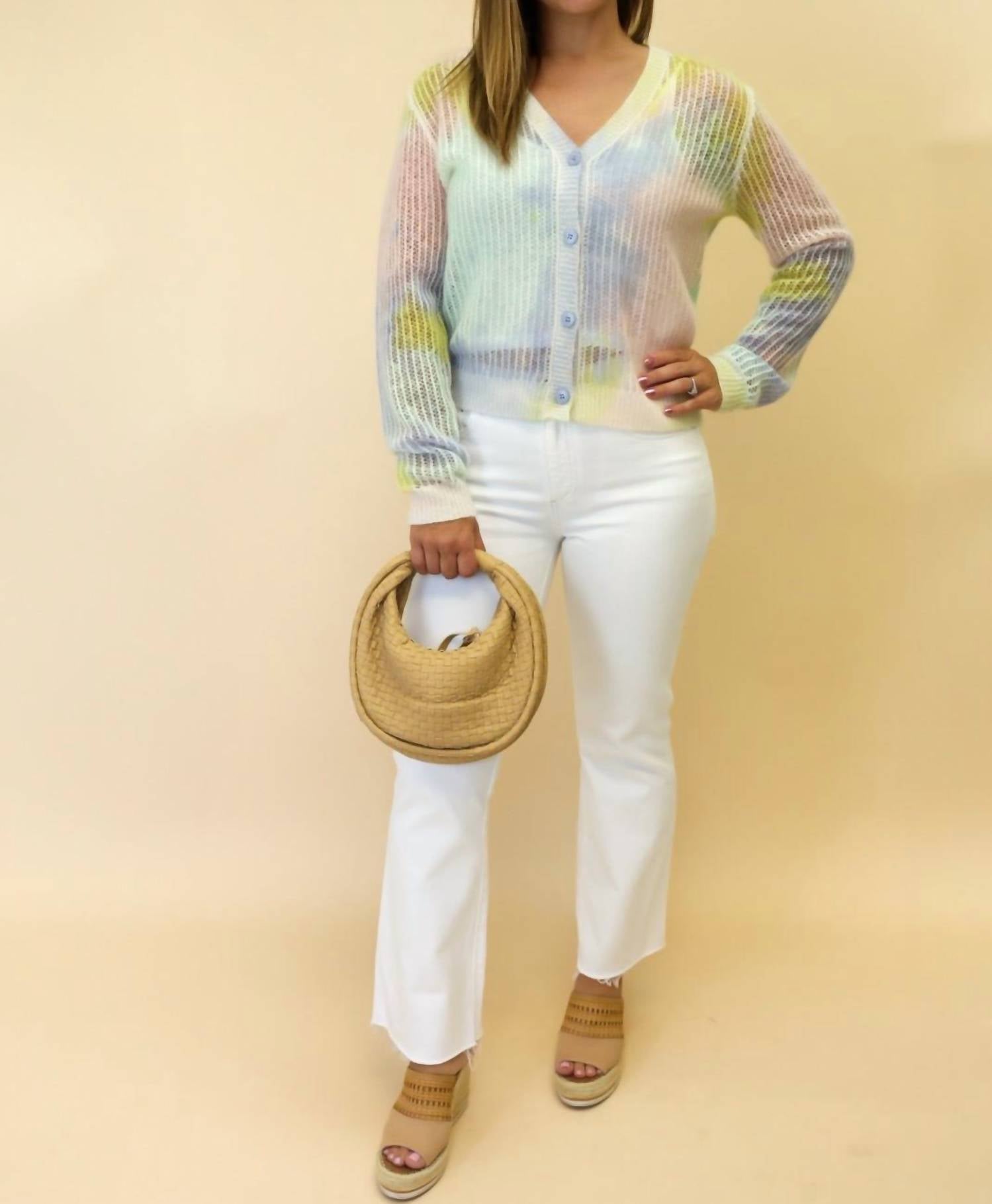 This cardigan will be a sweater-rotation favorite. Introducing the Cali Cashmere Sweater by 27 Miles Malibu, a luxurious piece in a vibrant Cotton Candy color. This women's cardigan features long sleeves and a stylish V-neckline, enhanced by a textured pattern for added elegance. Crafted from a sumptuous cashmere blend, it offers a button closure for versatile styling. Ideal for travel and perfect for the fall season, this cardigan encapsulates 90s fashion trends.