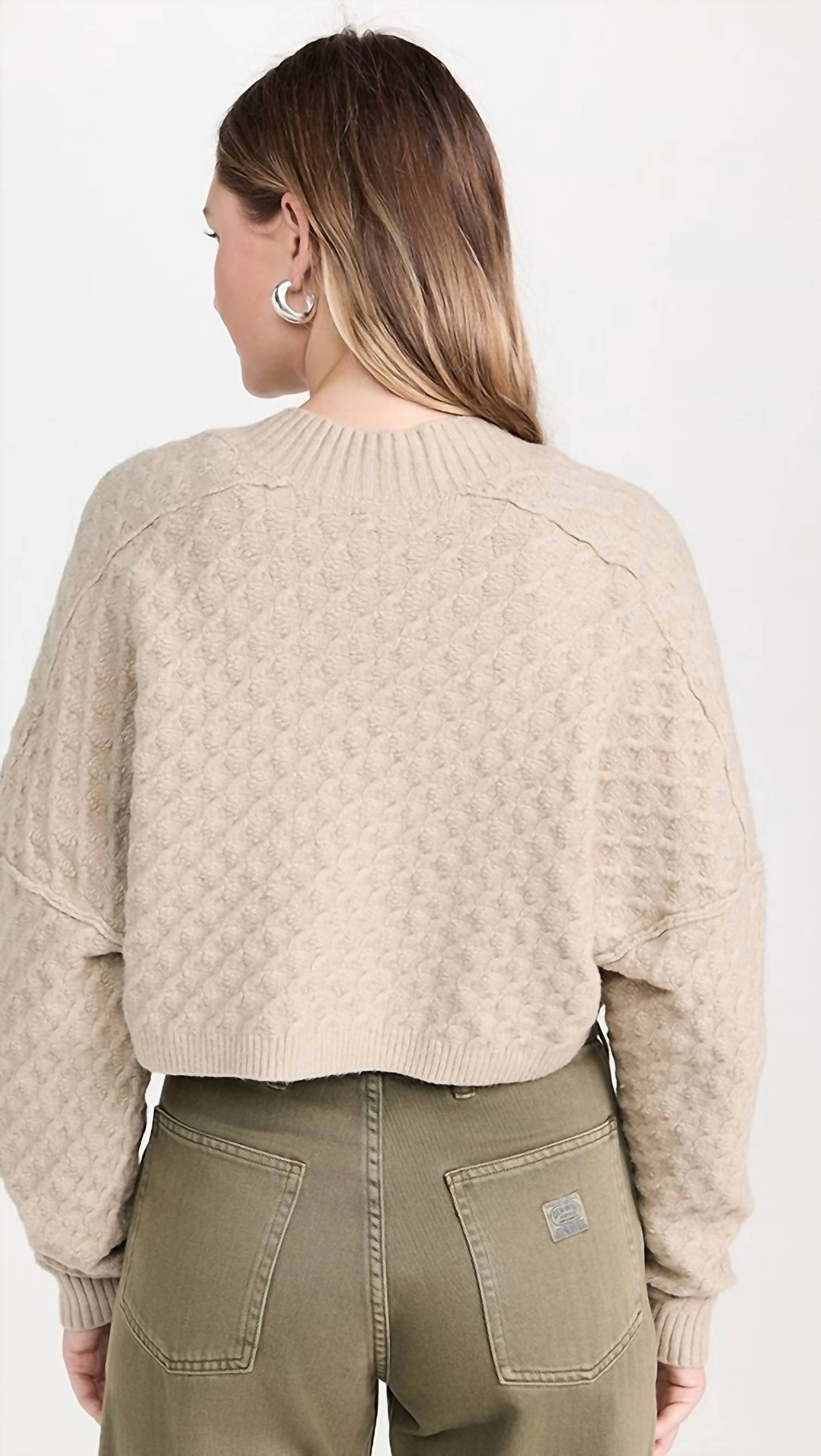 This cardigan features long sleeves and an open placket with a ribbed knit design. Made from a shell composition of 53% cotton, 43% polyamide, and 4% elastane. Length: 15.75" (size S). Model is 5'10" with a bust measurement of 33" and a waist of 25", wearing size S. Hand wash recommended; imported.