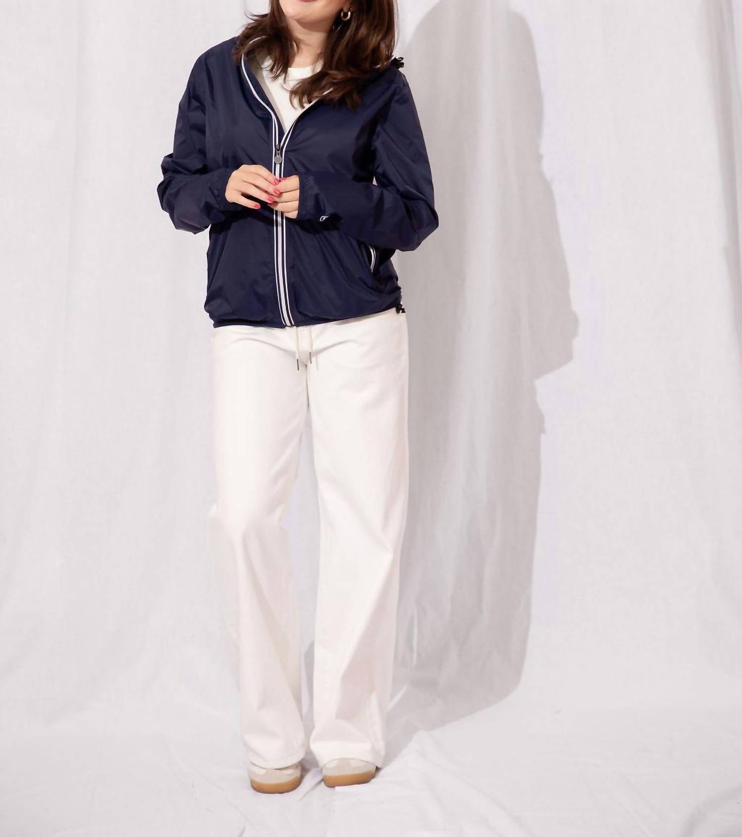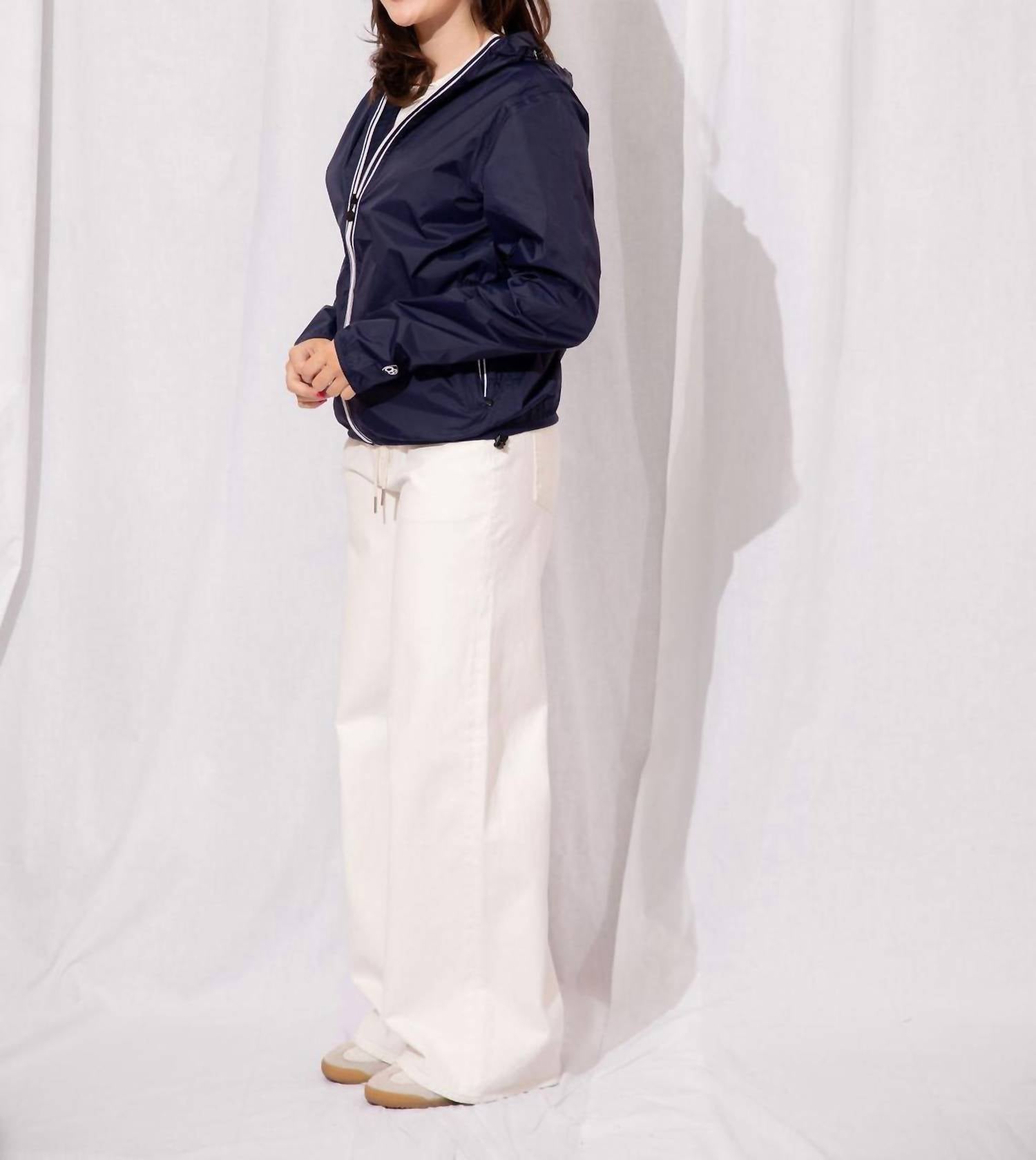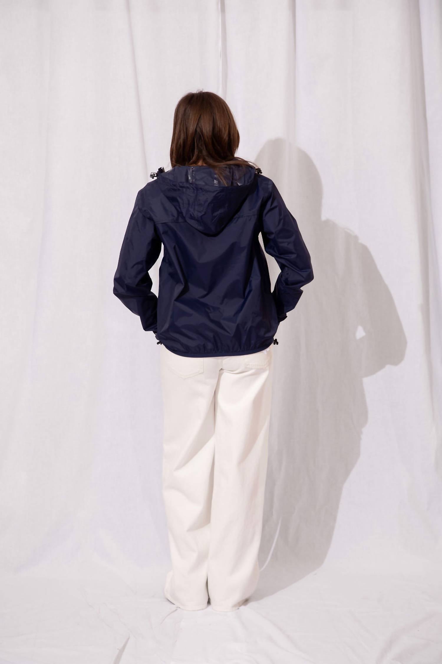 A casual yet cool jacket that every closset needs. Stay dry and stylish with your ultimate travel companion in navy blue. Featuring long sleeves, solid pattern, mid-length casual jacket boasts a fully waterproof and breathable design with heat-sealed seams and adjustable drawcords at the hood and hem. Crafted for on-the-go convenience with sleek custom zippers and the unique ability to pack into its own pocket with a clip, perfect for unpredictable weather. Designed without lining, it's ideal for fall, and the zip closure ensures you'll be snug on all your streetwear adventures.