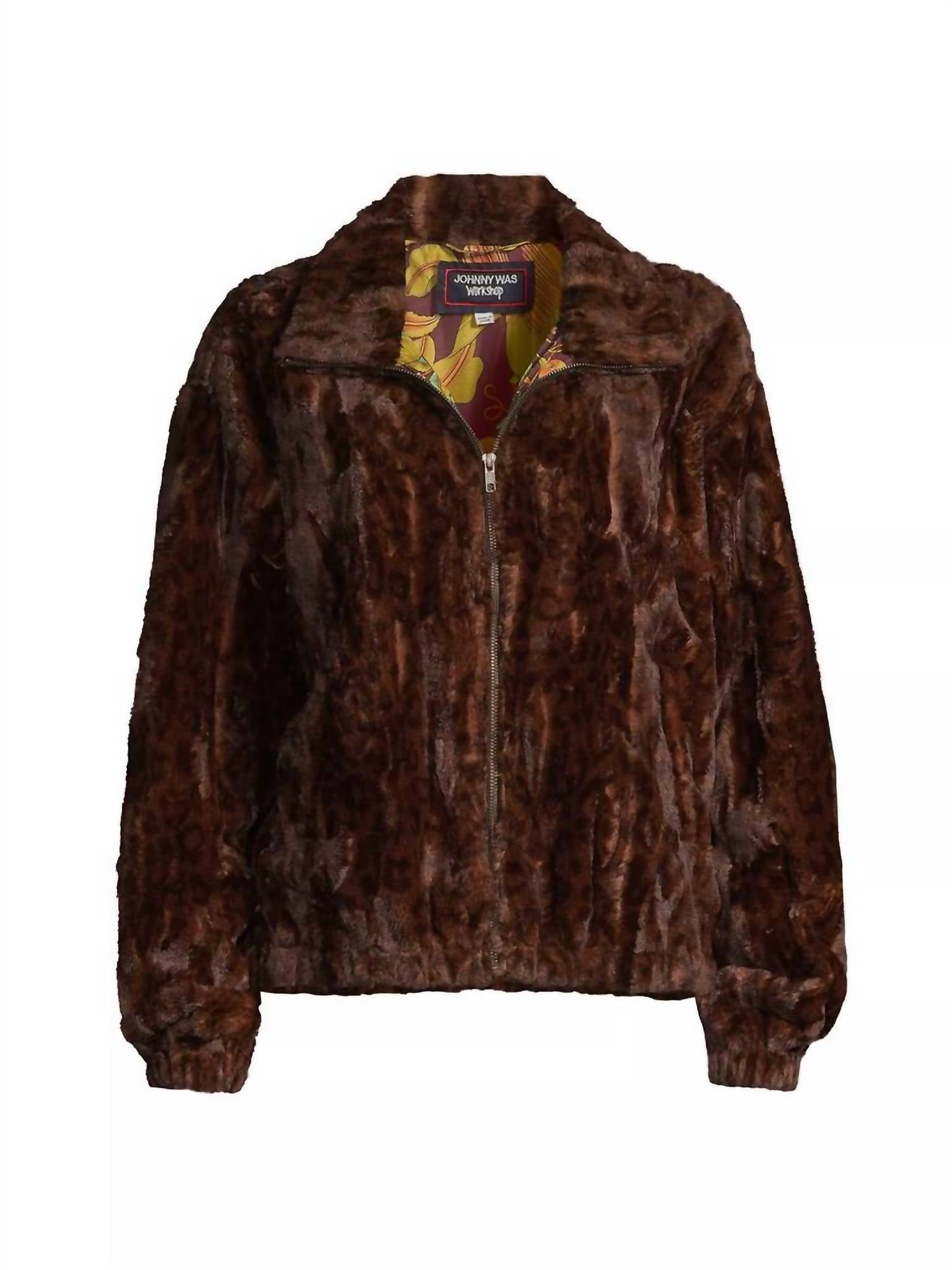 Nothing is cooler than this vintage inspired bomber jacket. Elevate your winter wardrobe with the Johnny Was Jaguar Faux Fur Bomber Jacket, a stunning piece in an animal pattern featuring a rich brown and black color palette. Perfect for costume parties or festive occasions, this jacket boasts long sleeves with elasticized cuffs and a spread collar. Crafted from 100% polyester, it offers a cozy fit with a garment length of 26 inches, and practical zip-front closures. Imported and lined for added warmth, it requires hand washing to maintain its luxurious appeal.