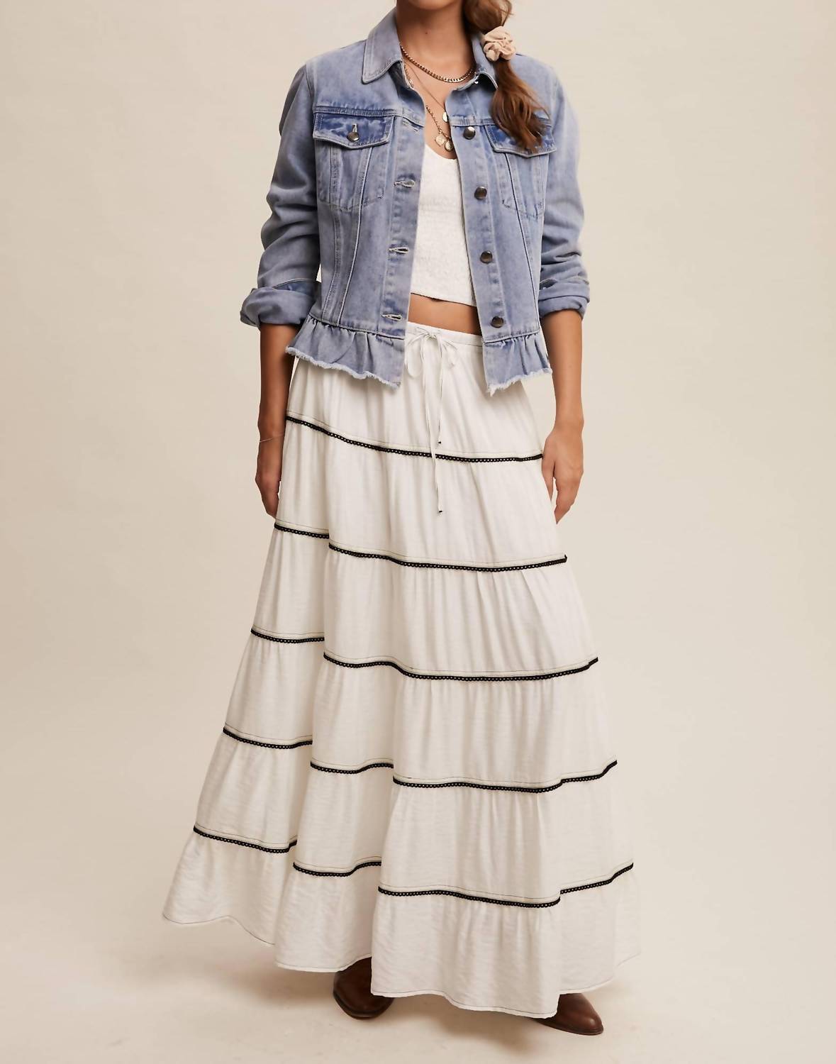 Listicle - Ruffled Hem Denim Jacket