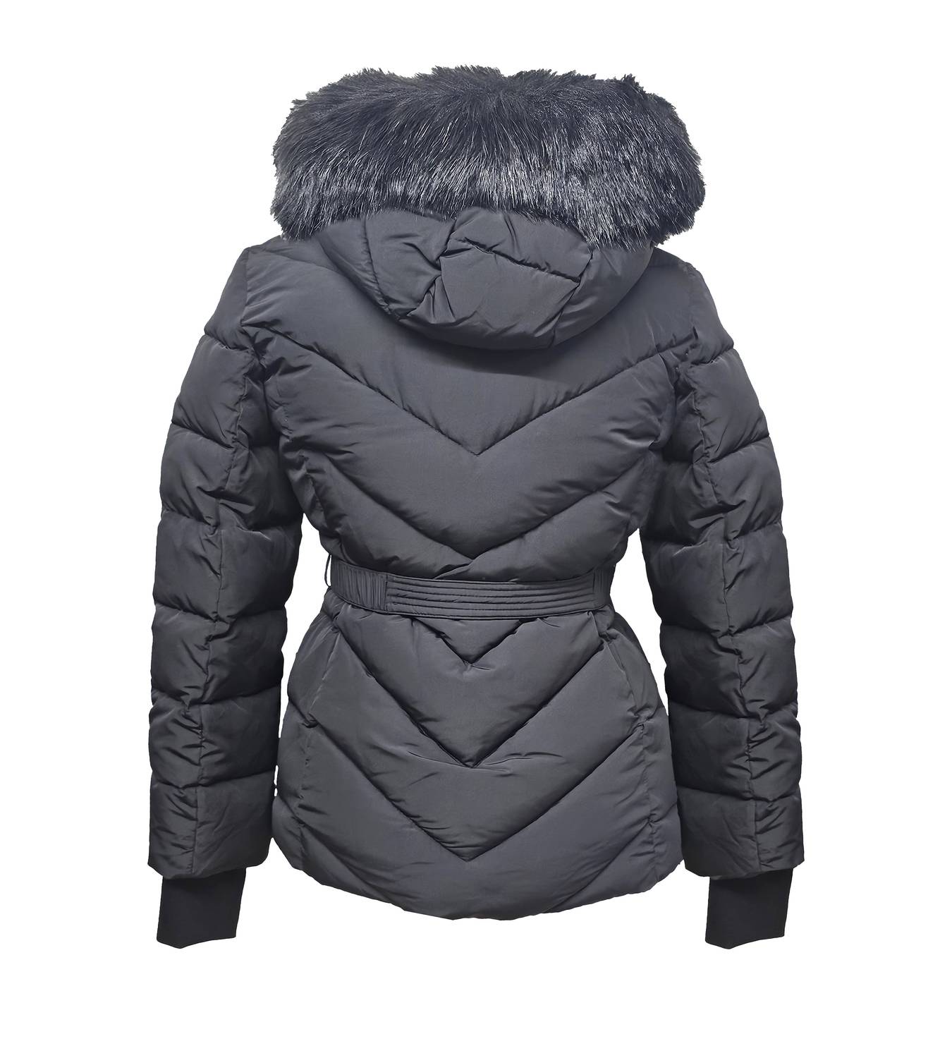 Featuring long sleeves with thumbholes for added comfort and a convenient zippered chest pocket for essentials, this jacket offers both functionality and flair. Made from water-resistant polyester, it boasts a plush down fill of 90% down and 10% waterfowl feathers, complemented by a 100% polyester hood and collar fill. Imported with a chic hooded neckline and a secure zip closure, it requires dry clean only to maintain its luxurious appearance.