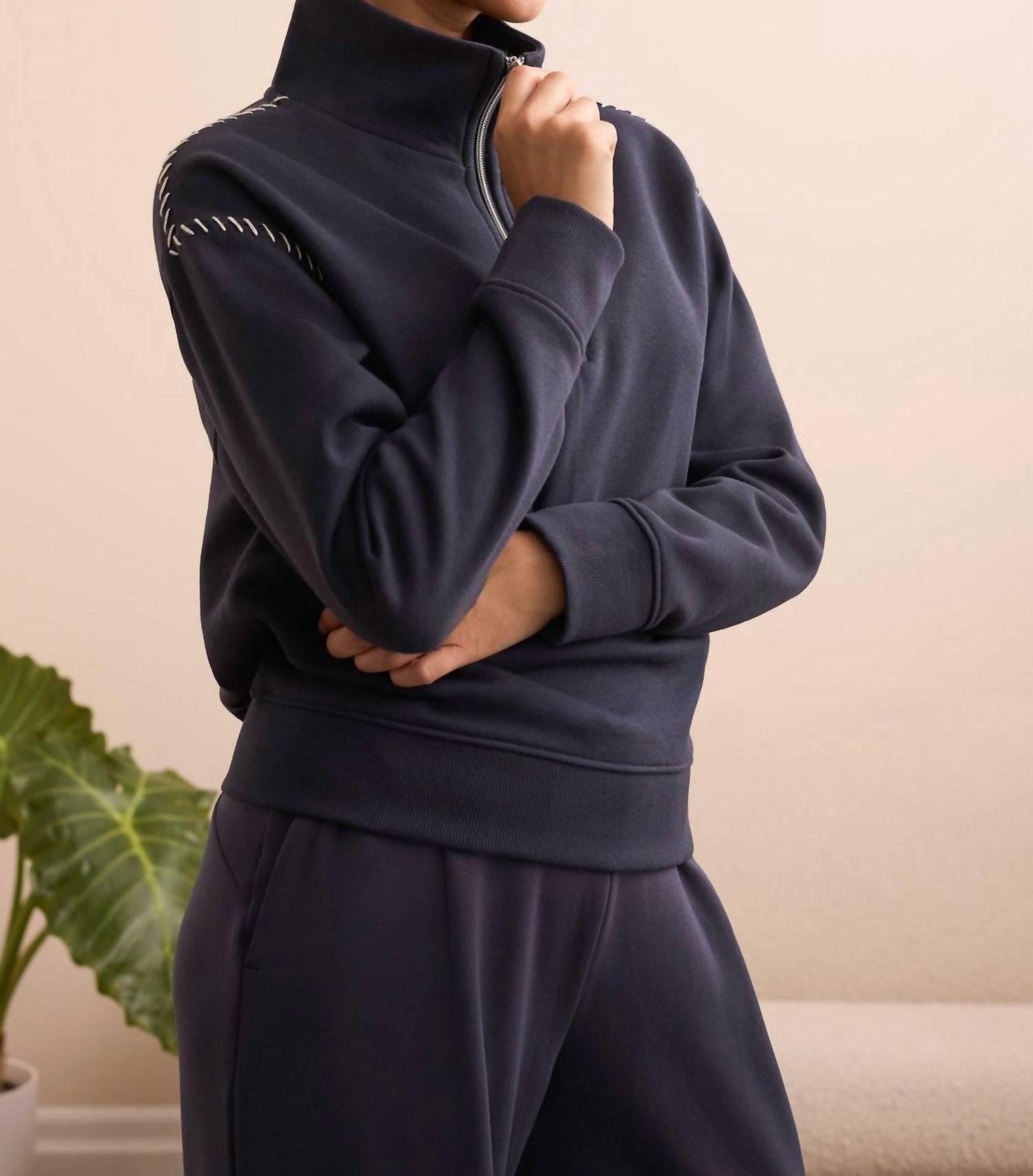 A jacket so versatile you can literally wear it with anything. Introducing the Women's Zip Funnel Neck Top by TRIBAL, a stylish sapphire piece designed for both comfort and versatility. Crafted with long sleeves and composed of a cozy 59% Cotton and 41% Polyester blend, this top ensures warmth and ease of movement. The French terry fabric, coupled with saddle stitching details, elevates the sophistication of your look. Closure: Half-length zip closure. Care: Machine wash on a normal cycle with cold water, tumble dry low, and low iron if needed.