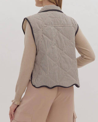 Entro - Women's Stripe Oversized Quilted Gilet Top