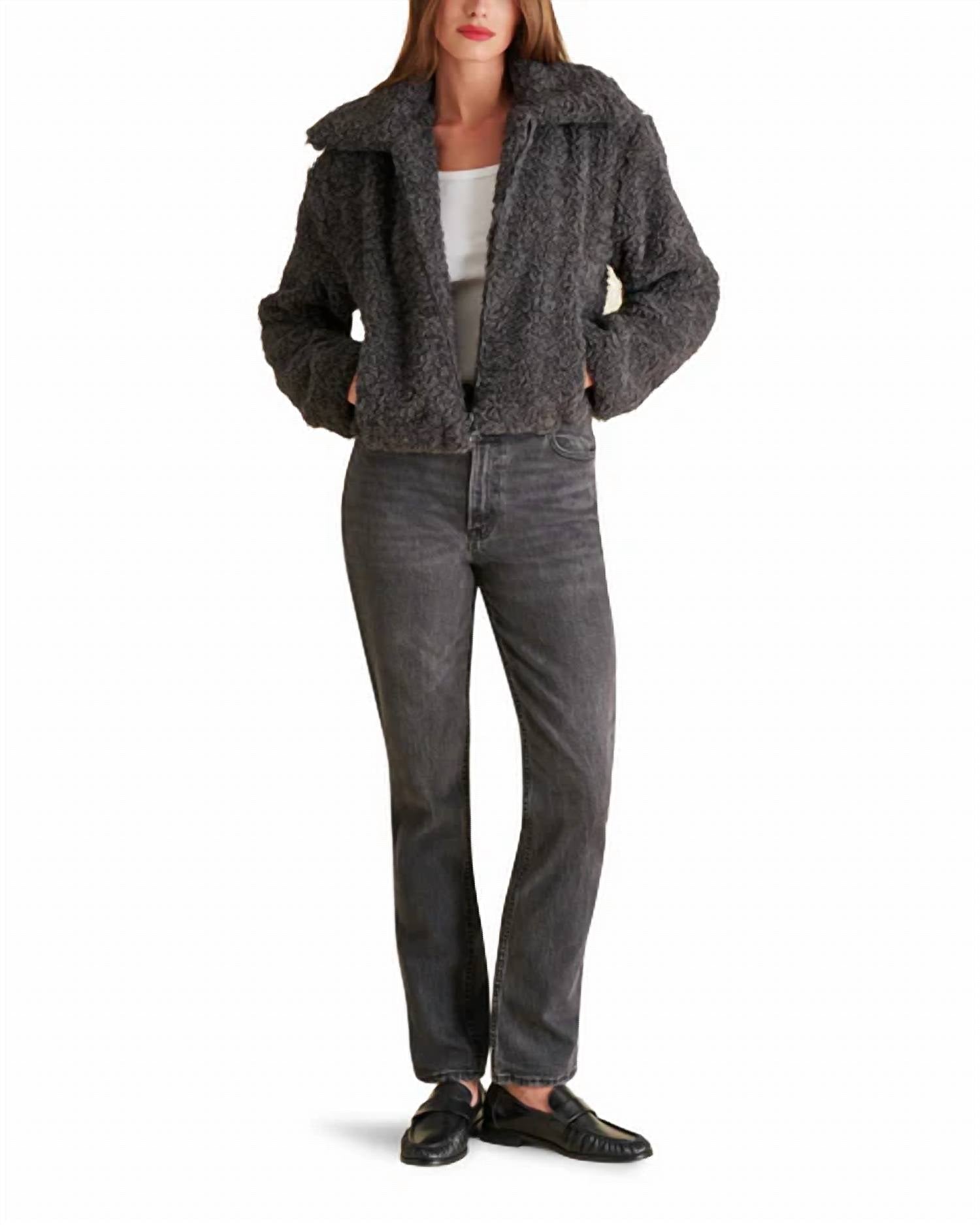 Colder weather means jacket season and we are loving everything about this timeless teddy jacket. Introducing the Pippin Jacket by STEVE MADDEN, a cozy addition to your collection in a versatile gray hue. This women's teddy jacket features long sleeves and is expertly woven from 100% polyester, ensuring a soft feel and lasting durability. With a functional zip closure and handy pockets, it offers both style and practicality. Proudly imported and tailored for a textured finish, the Pippin Jacket is a must-have for effortless layering.