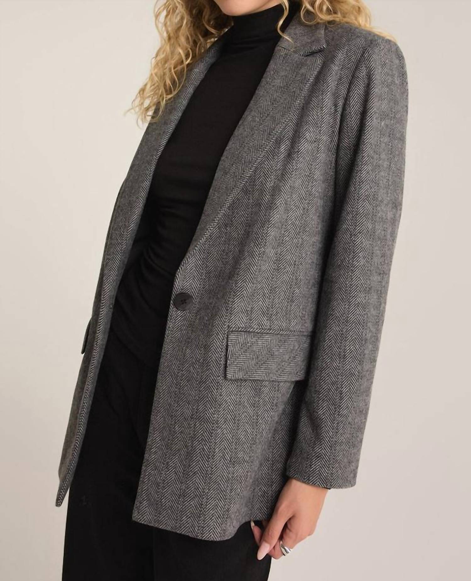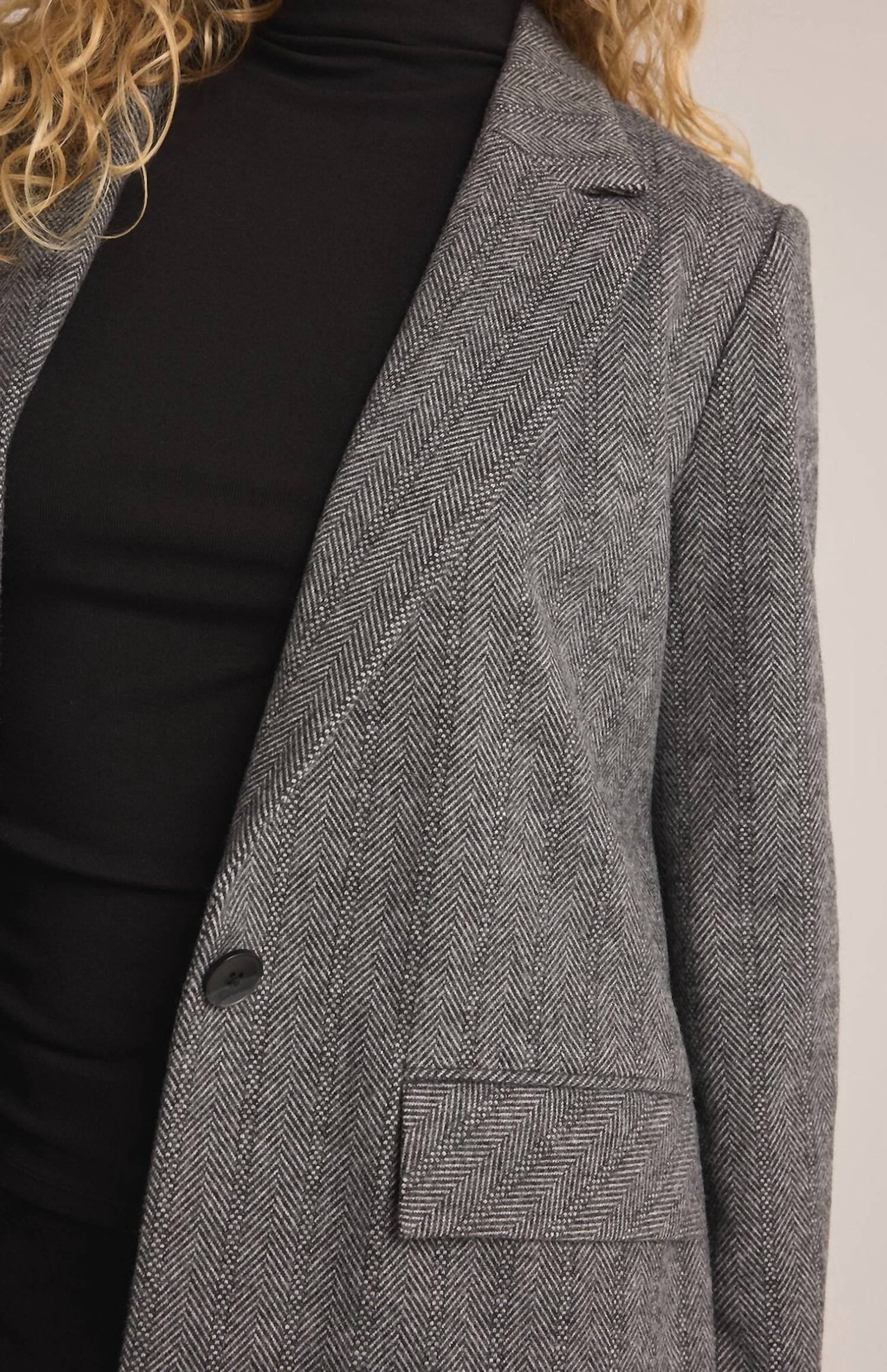 A blazer so versatile you can wear it to the office or pair it with jeans for a more casual look. Introducing the Leighton Herringbone Blazer by Z Supply in a sophisticated Charcoal Heather hue, an essential piece for any elegant collection. This women’s blazer features long sleeves, a classic herringbone pattern, and a tailored fit. Crafted from 100% Polyester with a button closure, it’s equally stylish and comfortable for special occasions or work. Care instructions recommend machine wash cold inside out on a gentle cycle, hang to dry, with a warm iron on reverse if needed, or for best results, opt for dry cleaning.