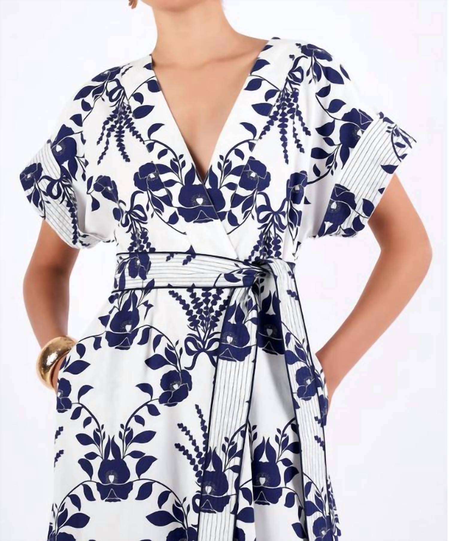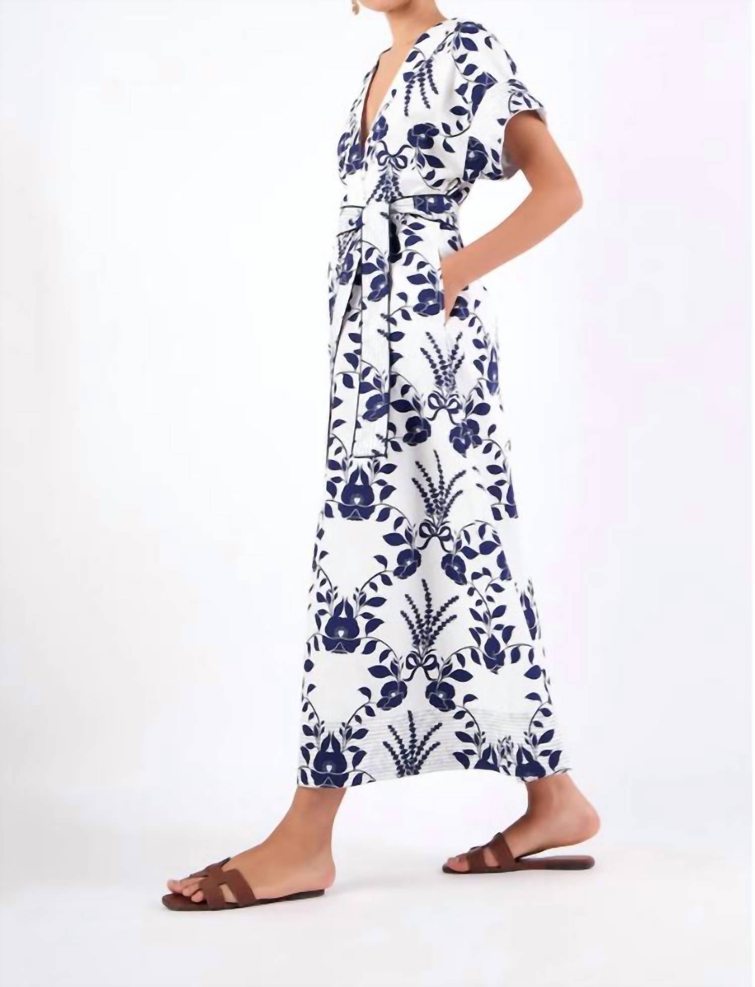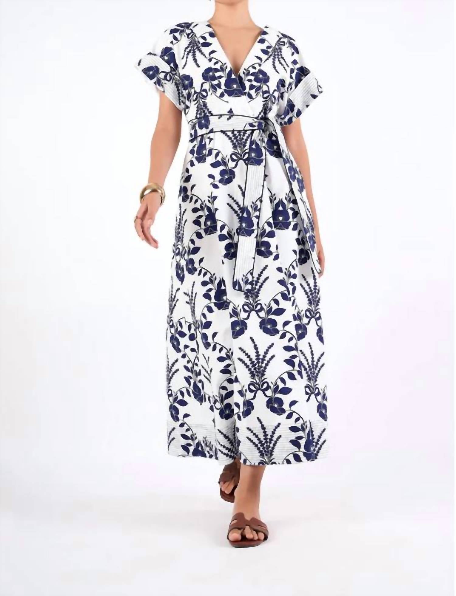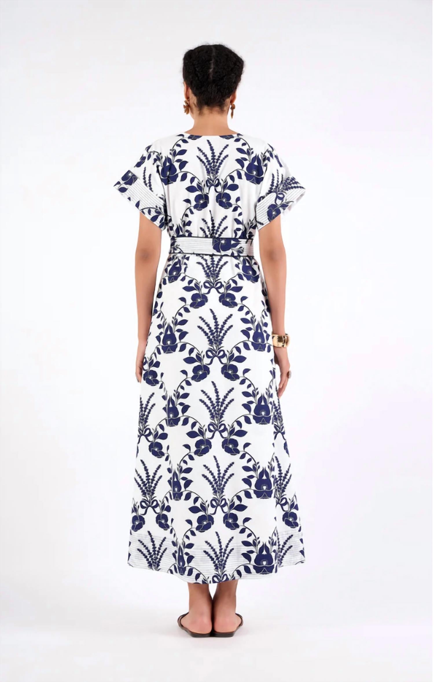 The perfect length dress does exist. Introducing the Sailor Dress by BEYOND by Vera, a stunning piece in Lavender Navy designed for coastal-inspired elegance. This dress features short kimono sleeves, a flattering V-neckline, and a relaxed waistline with a self-tie belt for an adjustable fit. It’s made from 100% cotton poplin, ensuring breathability and comfort all summer long. Closure: Tie closure. Perfect for vacation or Thanksgiving occasions, this boho-chic piece is a must-have for your wardrobe.