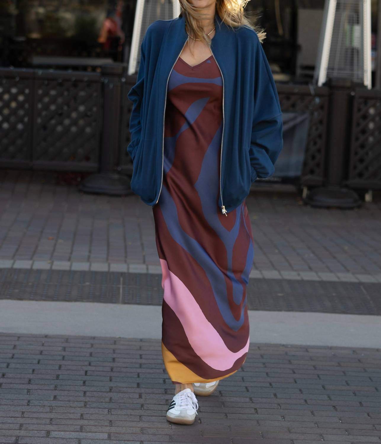 A maxi dress that is just as cute as it is comfortable. Step into the world of timeless elegance with the Lennon Zipslip Dress by Care Tucker, featuring a captivating multicolor patterned design. This maxi slip dress showcases a sleeveless silhouette with a V-neckline, making it a versatile choice for both casual outings and formal events. Highlighted by its unique 65cm slit with a hidden zipper, this piece allows you to decide just how much to reveal. Closure: Pull on. Care: Machine wash cold, do not bleach, lay flat to dry, and do not iron. Model is wearing a size S, standing at 5'7" with a 35/C bust and a 25" waist.