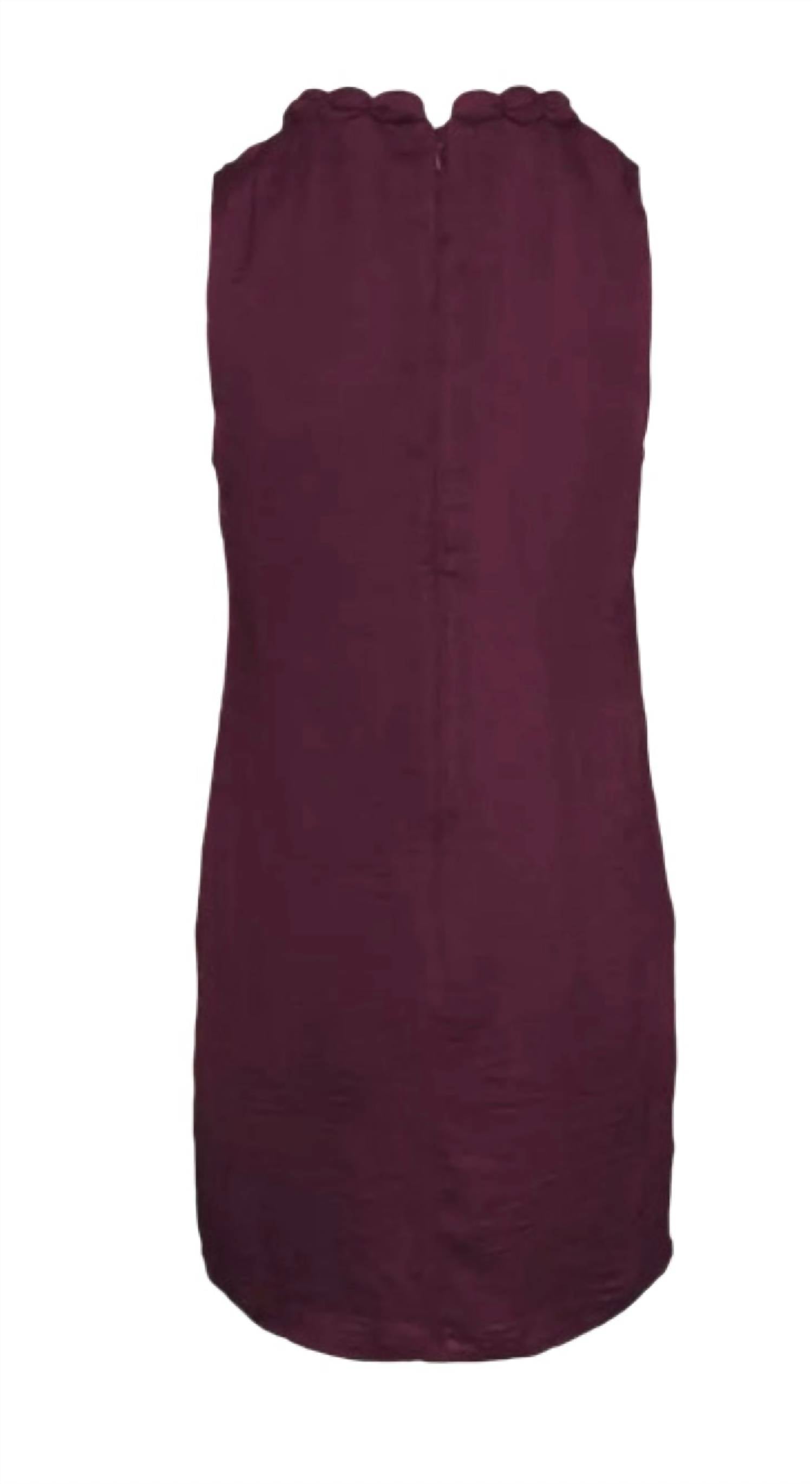 A short and breezy dress for those warmer days. Elegant wine shade is your go-to for a chic Spring occasion. Featuring a sleeveless silhouette. Crafted from 100% polyester with a refined ball detail accent along the crewneck. Back zip closure and slit side pockets provide functional ease. Care is straightforward with hand washing recommended.
