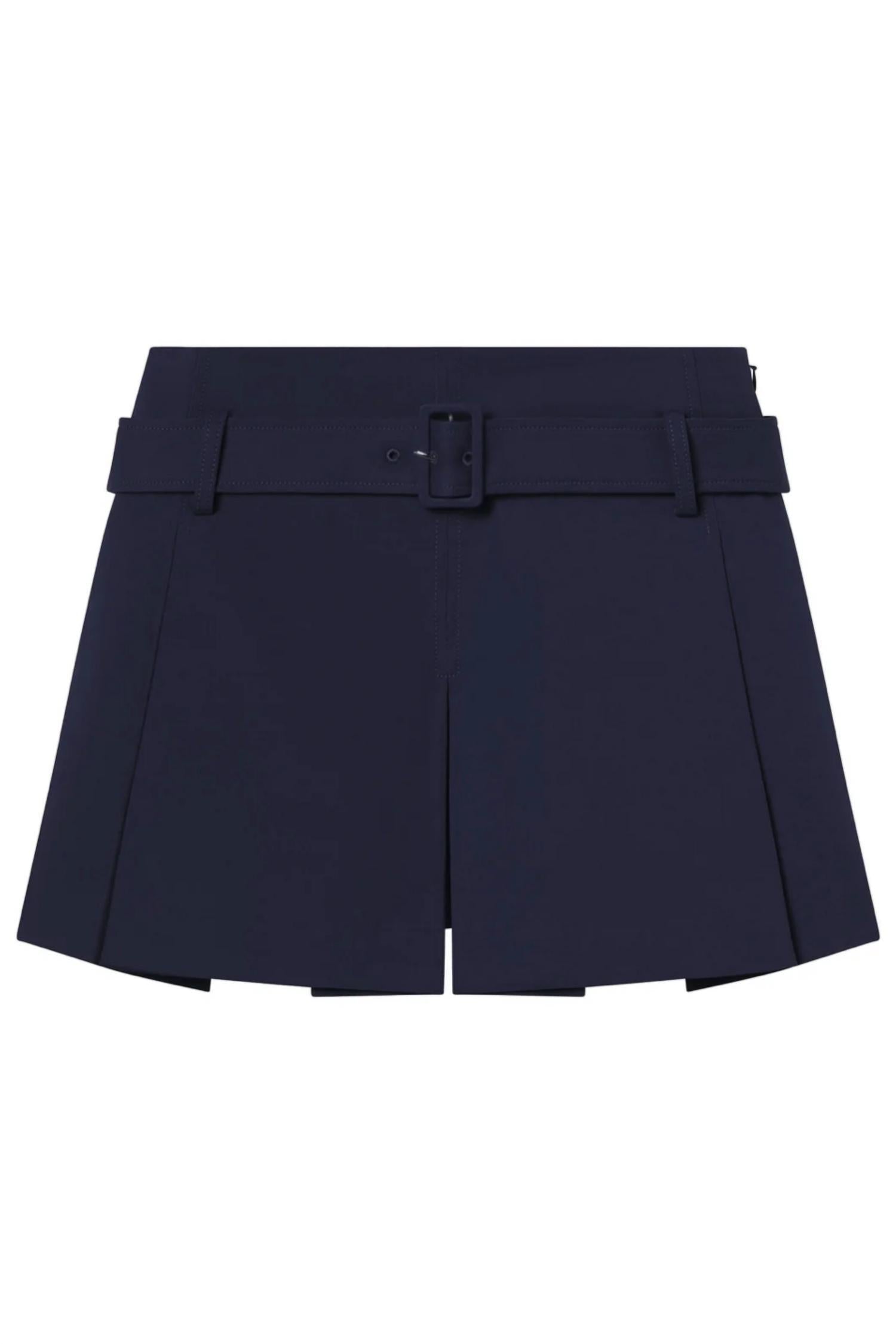 Introducing the Como Flared Short by A.L.C., a stunning choice for effortless sophistication in Evening Blue. These shorts are crafted from a blend of 95% Cotton and 5% Elastane, offering a comfortable fit in a flared mini silhouette. Features include front pleats, side slit pockets, back welt pockets, and a matching wide belt for added flair. Closure: Zip closure. Inseam: 3.125". Care: Dry clean only. Perfect for workwear or a stylish vacation wardrobe.