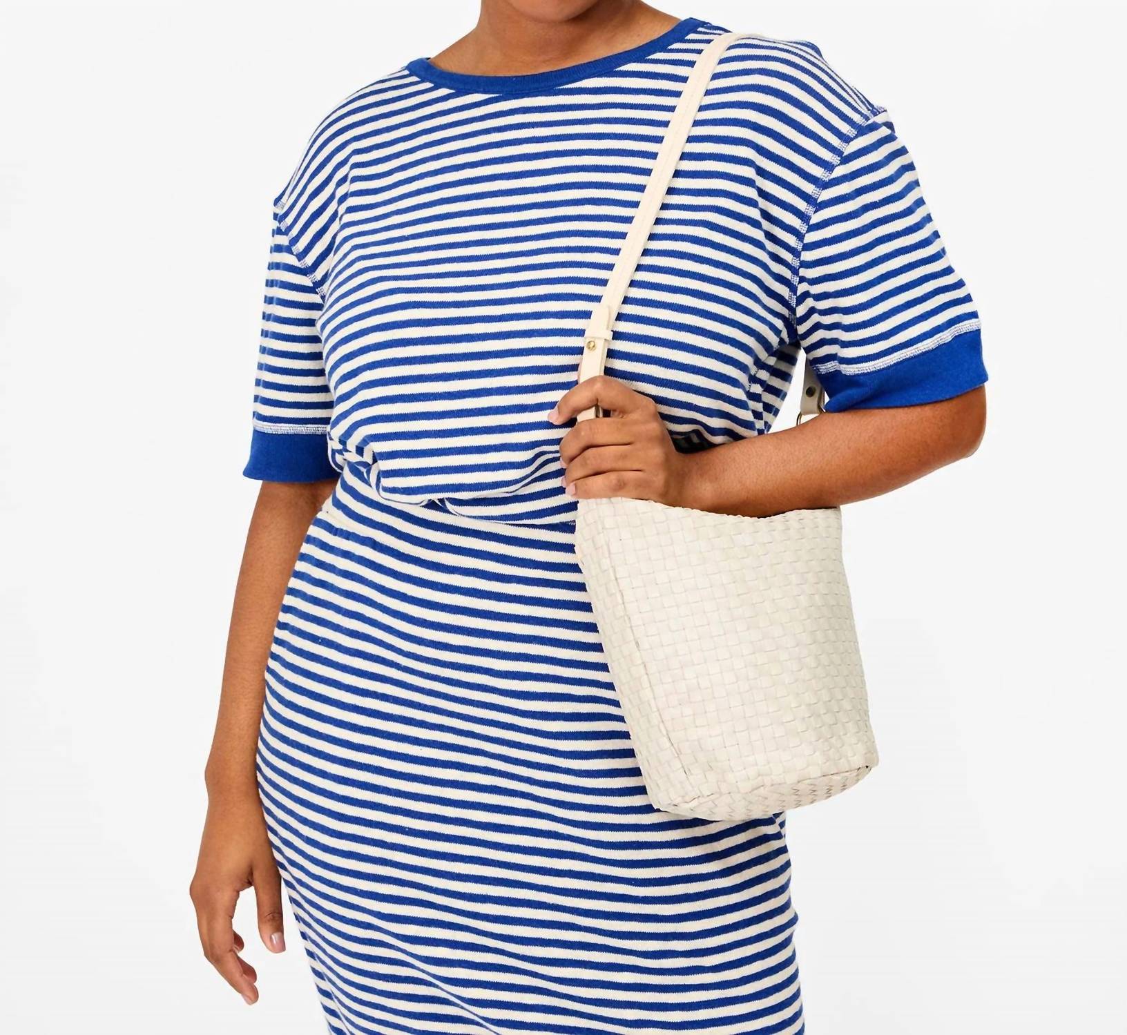 Introducing the Petite Jeanne Bag by Clare V., a chic shoulder bag in classic cream that's perfect for everyday use. This stunning piece is crafted from handwoven calfskin leather and features gold-tone hardware for a touch of elegance. With a versatile removable shoulder strap, it's compatible with other straps for styling flexibility, and is equipped with a zip closure for security. The bag's dimensions are 9.75 inches in height, 11.75 inches in length, and 5.5 inches in depth, with a strap drop of 13.5 inches.