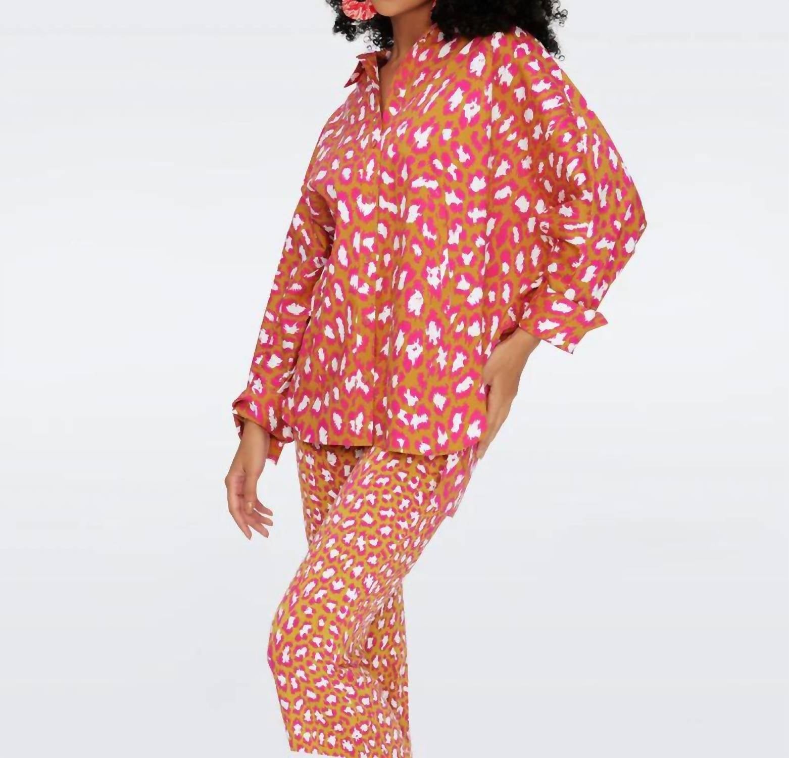 Embrace the wild allure of the Diane von Furstenberg Women's Caleb Blouse in Natural Leopard print, an elegant addition to any wardrobe. This blouse features long sleeves and is crafted from soft cotton for a comfortable fit. It is designed with a stylish collar and practical pockets, ensuring both fashion and function. Closure: Button closure. Care: Machine wash and lay flat to dry.