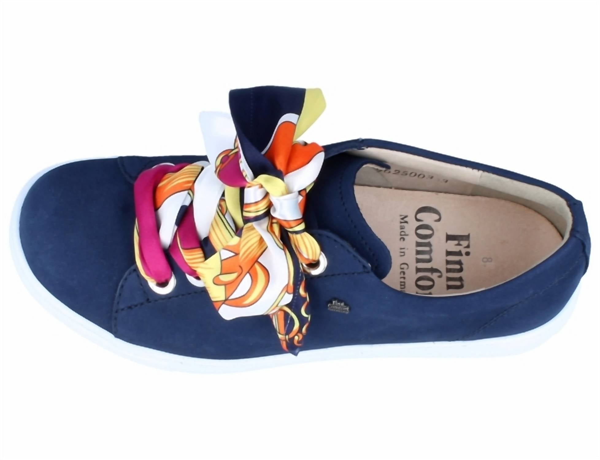 Get your daily steps in with these adorable sneakers. Introducing the Women's El Paso Sneakers by Finn Comfort, designed in a chic Nubuk Atoll hue for streetwear style. These sneakers feature a premium leather upper with a traditional lace-up vamp and a flexible lightweight EVA sole. They include a regular removable footbed made of suede leather, jute, and cork for superior comfort. Heel height is 12mm, ideal for a flat, relaxed fit. Perfect for summer music festivals, these sneakers combine functionality with a flair for fashion.