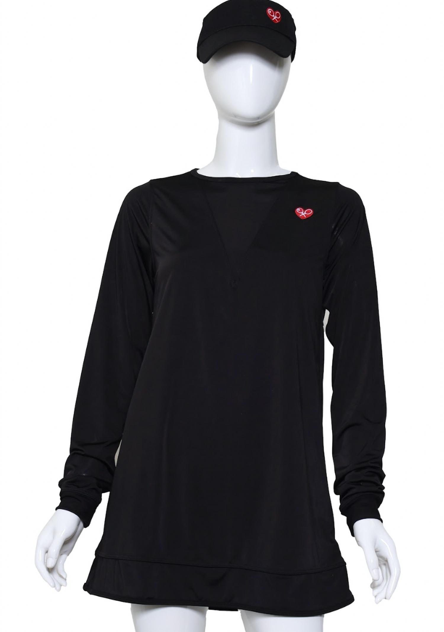 The kind of easy and flattering dress you'll be reaching for all season long. Discover the Women's Erika Dress by Love Love Tennis, a sporty and chic athleisure piece in vibrant orange. Featuring long sleeves and a universally flattering A-line silhouette, this mini dress is crafted with a crewneck for a bold look. Designed with a pull-on closure and convenient pockets, it's perfect for activities like tennis, running, or golf. Care is a breeze with machine wash and line dry instructions.