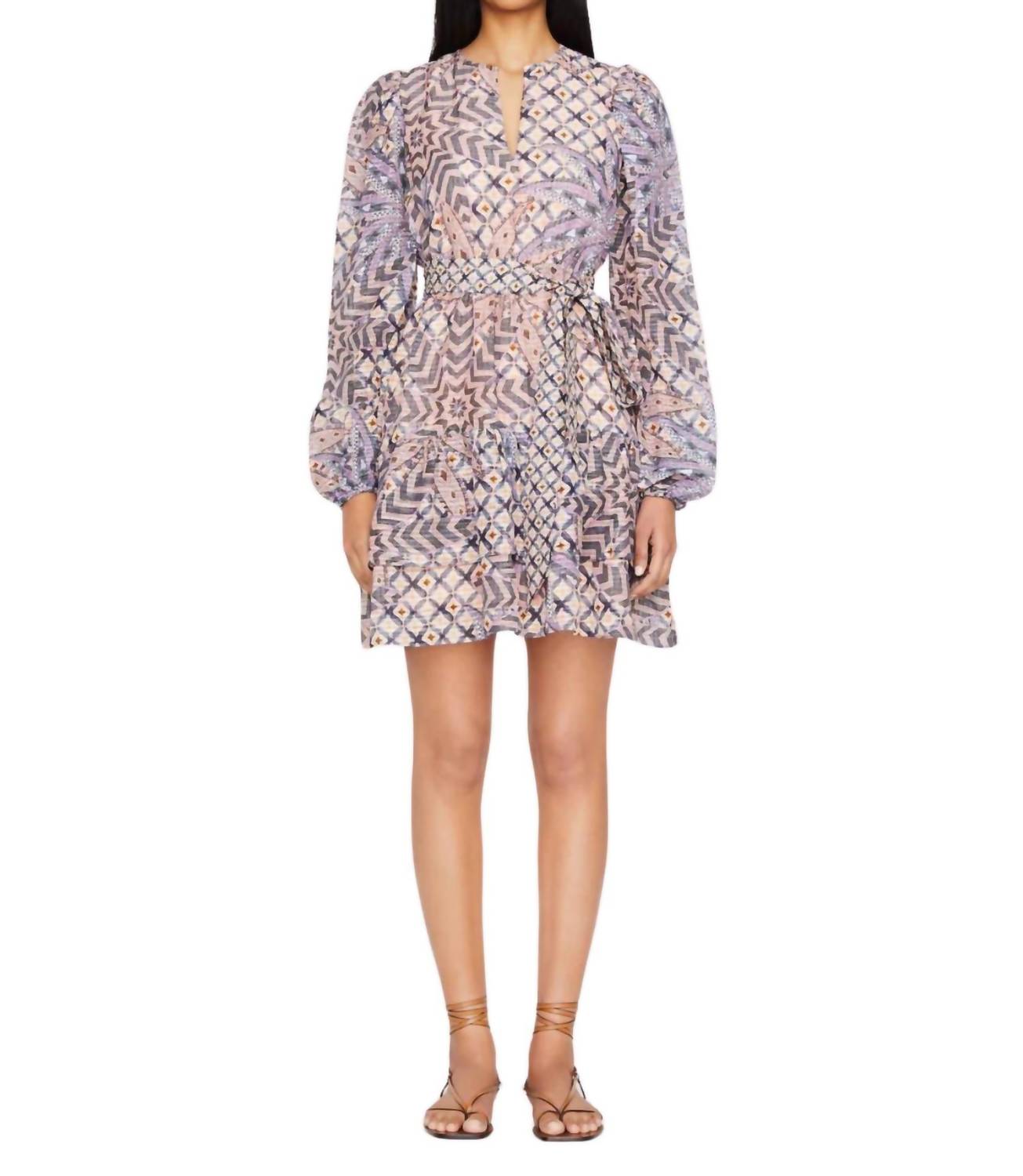 The kind of easy and flattering dress you'll be reaching for all season long. Step into the spotlight with the Preston Dress by Marie Oliver, featuring long sleeves and an elegant A-line silhouette. Made from a linen blend of 53% linen and 47% viscose, this delightful mini dress boasts a ruffle hem that hits just above the knee and is perfect for a variety of occasions. Designed in the charming Anise Lattice pattern, it is imported and styled with a V-neckline, optional tie belt, elastic waist and cuffs. Closure: Pull-on. Care: Dry clean only.