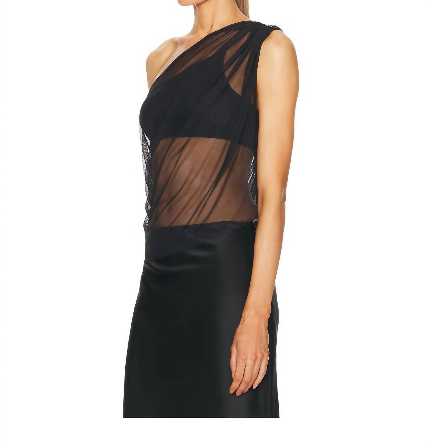 Pair this with your favorite jeans and slides for your next girls night out. Introducing the Thyme Mesh Toga Top by THE SEI, the perfect blend of elegance and understated appeal. This sleeveless blouse features an off-the-shoulder neckline in a textured, thyme hue, embracing the quiet luxury trend. Crafted from 92% polyester and 8% elastane, it offers a true-to-size fit while ensuring comfort and style for your holiday party. Closure: Pull on. Care: Hand wash and line dry for lasting wear.