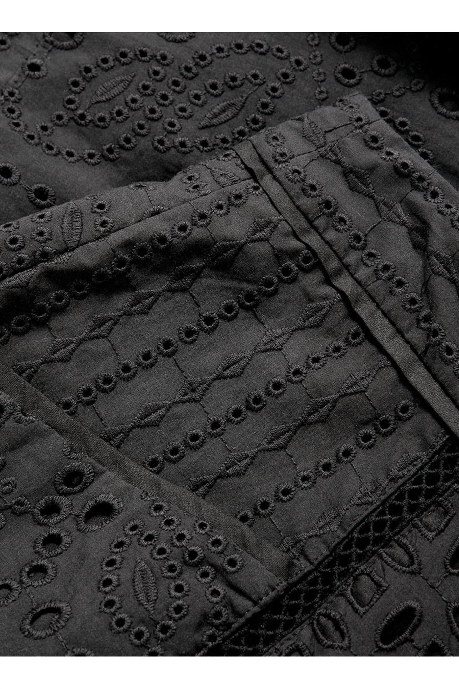 Tuck your favorite tee into these high-waist shorts for a more casual-cool feel. Elevate your spring wardrobe with the Fabian Eyelet Short by Veronica Beard, perfect for a Thanksgiving dinner party with its 90s fashion flair. This high-waist piece features a textured black eyelet design and is expertly tailored from 100% cotton with a cotton lining. The pull-on style boasts convenience and comfort with pockets for practicality. For best results, dry clean only.