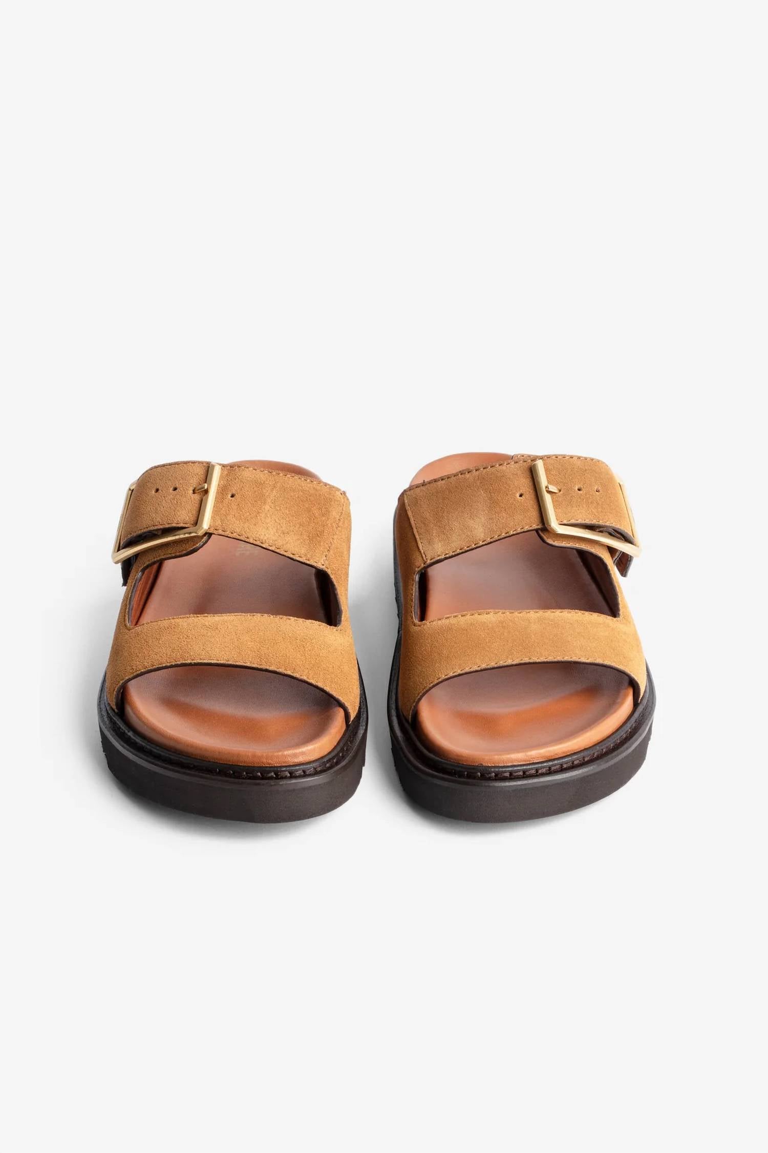 This sandal will take you from brunch to dinner and everything in between. Suede sandal feature an adjustable strap with a Cecilia Bönström-designed, gold metal C-shaped buckle. Adjustable strap. Cleated sole. Fabric: 100% Cow Leather. Platform 3cm. Made in Portugal.