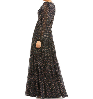 Ieena For Mac Duggal - Floral Ruffles Tiered Long Sleeve Maxi Dress
