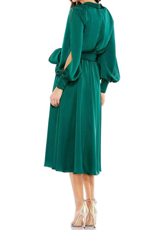 Mac Duggal - Collared Faux Wrap Bishop Sleeve Flowy Dress