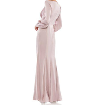 Mac Duggal - Satin Ruched Bishop Sleeve Gown