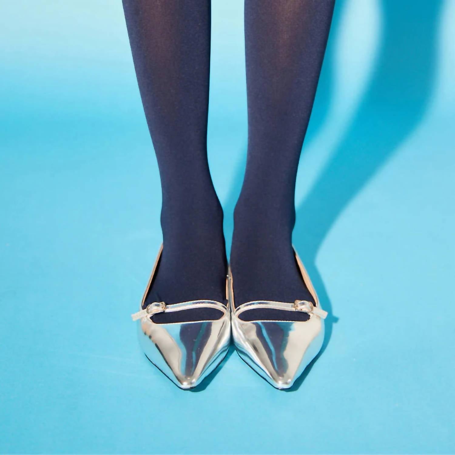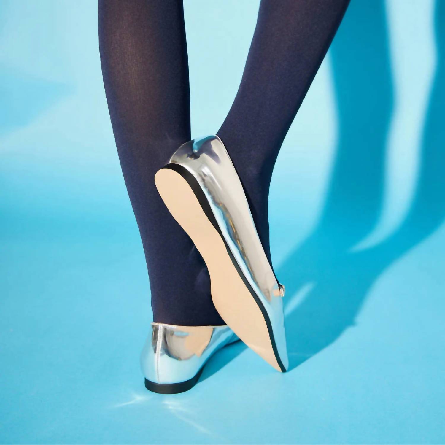 Introducing the Victoria Flat by YOSI SAMRA in a stunning silver shade, designed for the modern woman with a penchant for timeless style. This chic shoe features a vegan leather upper paired with leather lining and sock, showcasing a sharp pointed toe and adjustable buckle on the Mary Jane strap for a secure fit. The flat block heel and cushioned memory foam footbed provide all-day wearability, while the flexible resin rubber outsole ensures durability and ease of movement. Ideal for adding elegance with every step, the Victoria effortlessly combines comfort with sophistication.