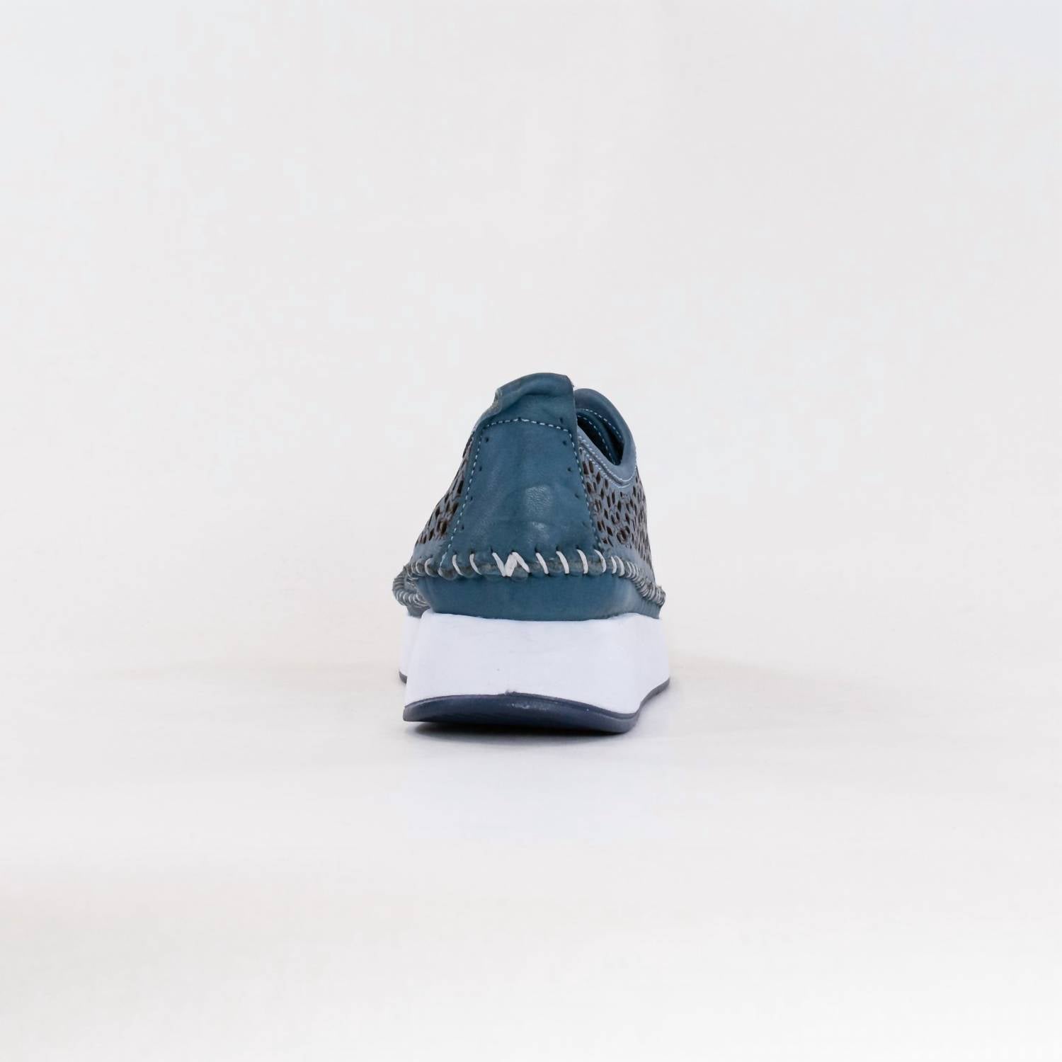Elevate your summer style with the Women's Youlanda Sneaker from SPRING STEP SHOES, crafted from premium leather in a striking blue hue. Featuring a slip-on closure for convenience, these sneakers are designed with a perforated side for added breathability and a wedge heel measuring at 1.25" with a 3/4" platform height. Made in Turkey, the shoe offers exceptional comfort with its arch support, padded, and removable leather insole. The EVA outsole ensures durability and stability, making it perfect for a minimalist dinner party look.