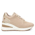 Step into elevated style with the Xti Women's Wedge Comfort Sneakers in chic hue. Crafted from breathable stretch polyester, these sneakers boast a sleek design with metallic details and a lace closure. Featuring a non-slip rubber outsole and a comfortable Comfortech insole, they offer a 1.75-inch wedge heel for a subtle height boost. These trainers are certified vegan by PETA, ensuring a fashion-forward choice that’s both conscious and comfortable.