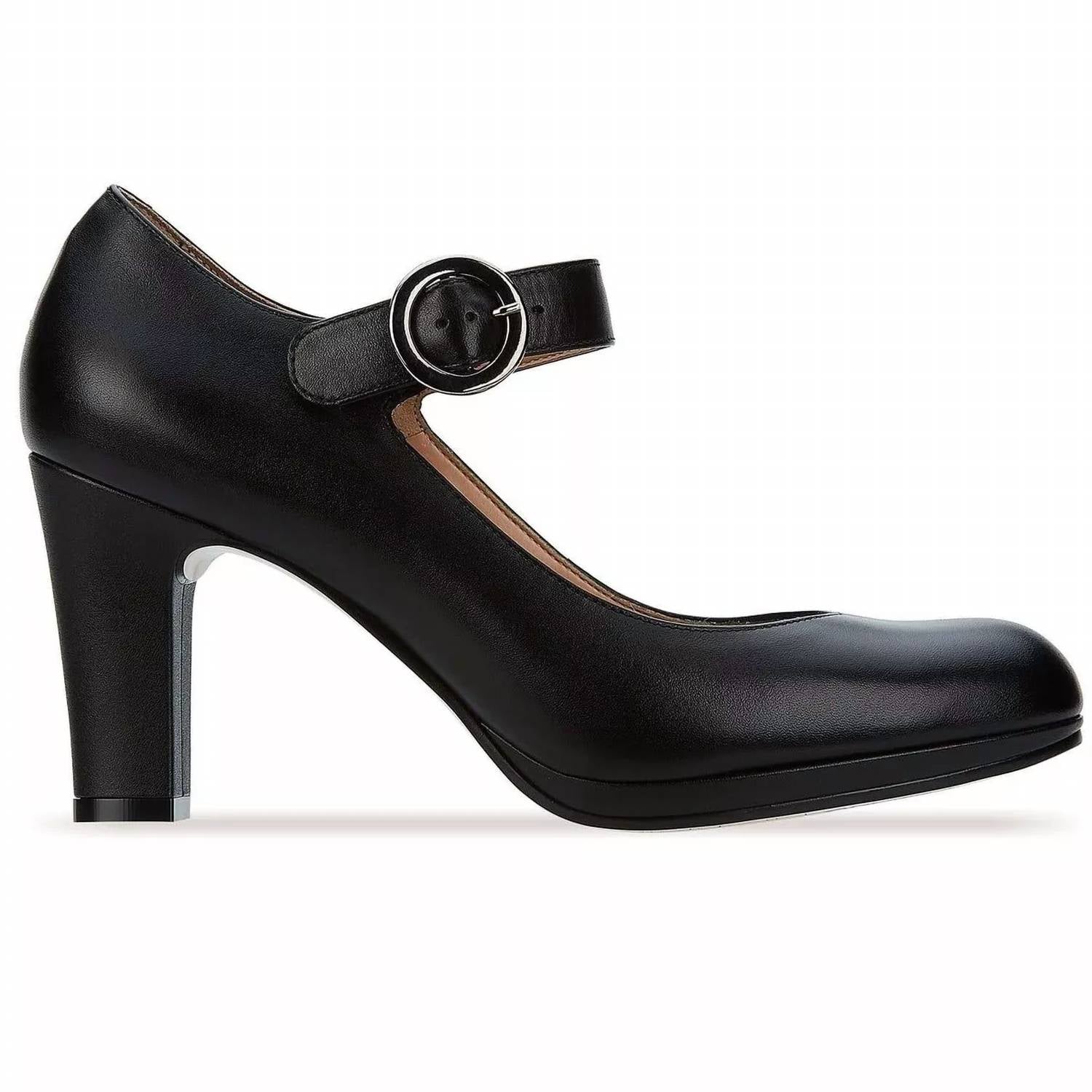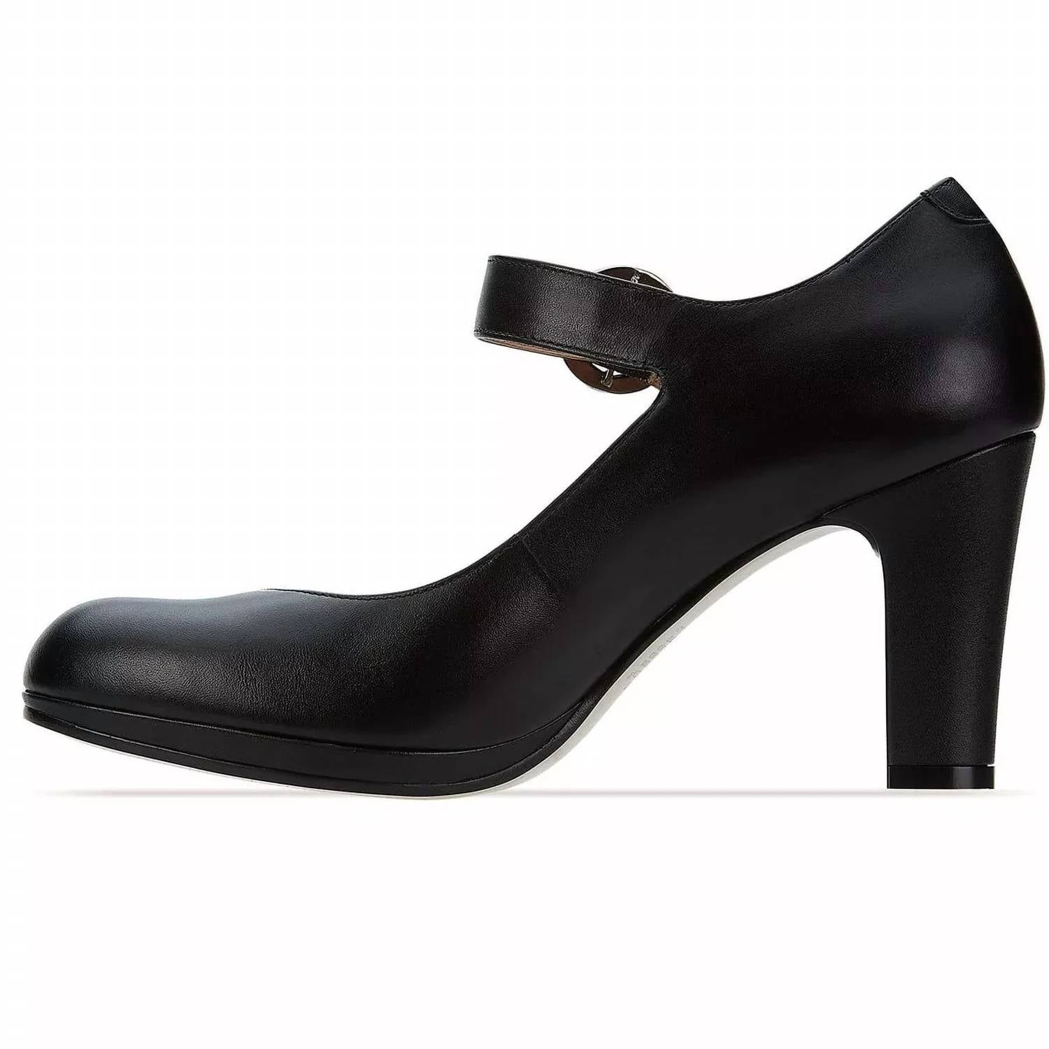 Don't be deceived, these heels are comfy as can be.These Women’s Leather Heels With Ankle Strap are crafted from 100% leather, featuring a classic silhouette with a modern ankle strap for versatility. The 3.35-inch block heel adds height without sacrificing stability, making them a comfortable and sophisticated addition to any wardrobe.