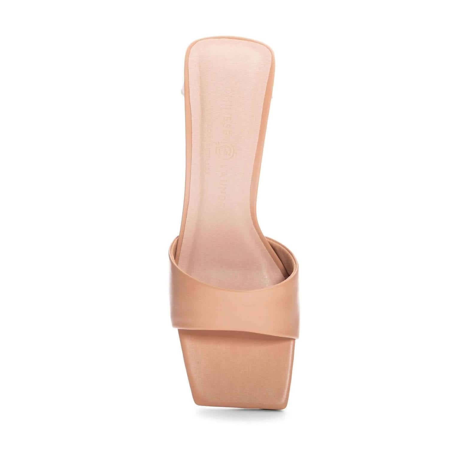 Don't be deceived, these heels are comfy as can be. Step into modern elegance with the Women's Square Toe Heel by Chinese Laundry, featuring a chic design in nude. Crafted from pleather and manmade materials, this sandal boasts a stylish three-inch triangle block heel and an open square toe for a sophisticated look. Stay true to size with this minimalist yet eye-catching addition to your wardrobe. Perfect for elevating any ensemble with its clean lines and structured silhouette.