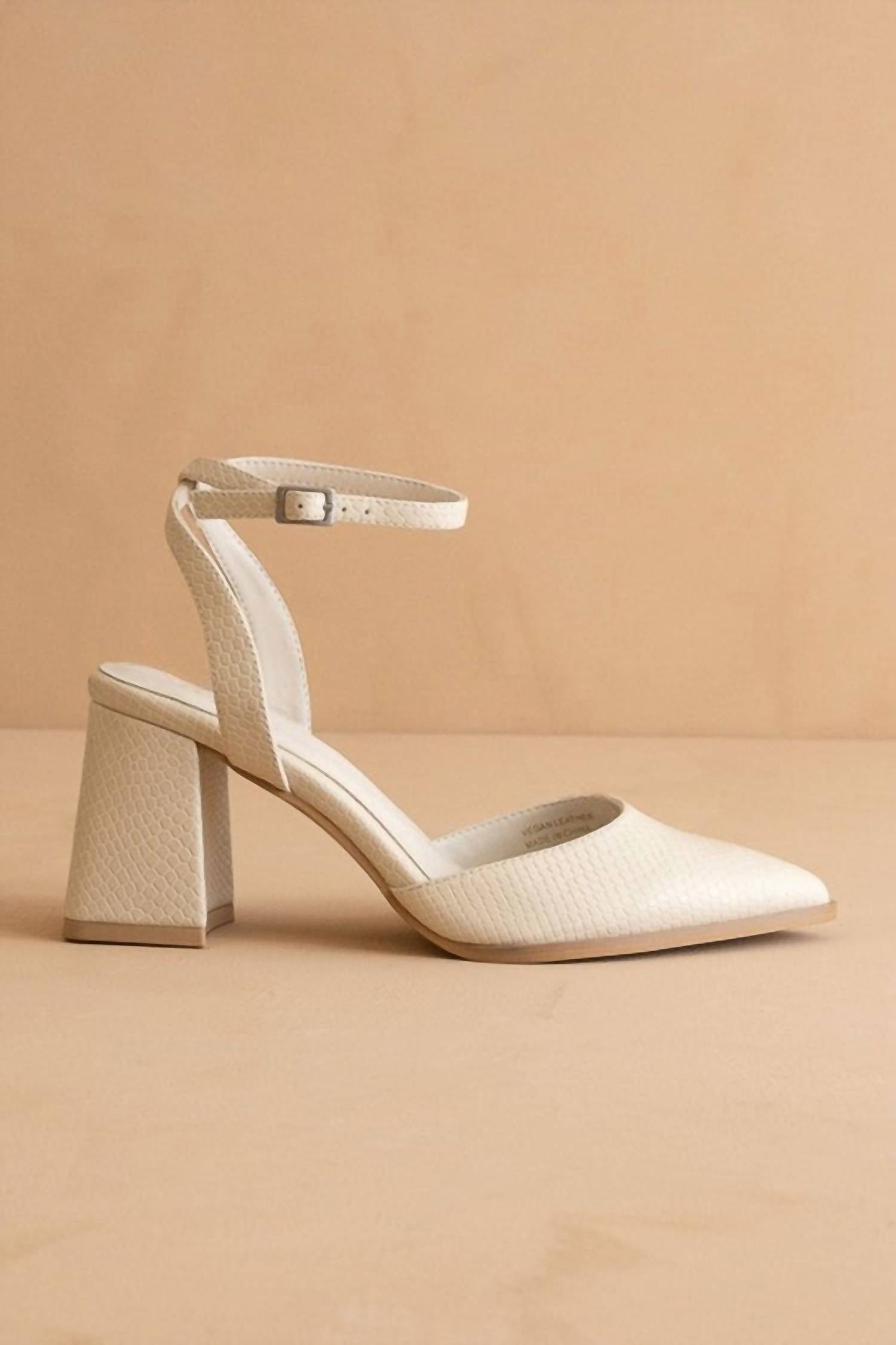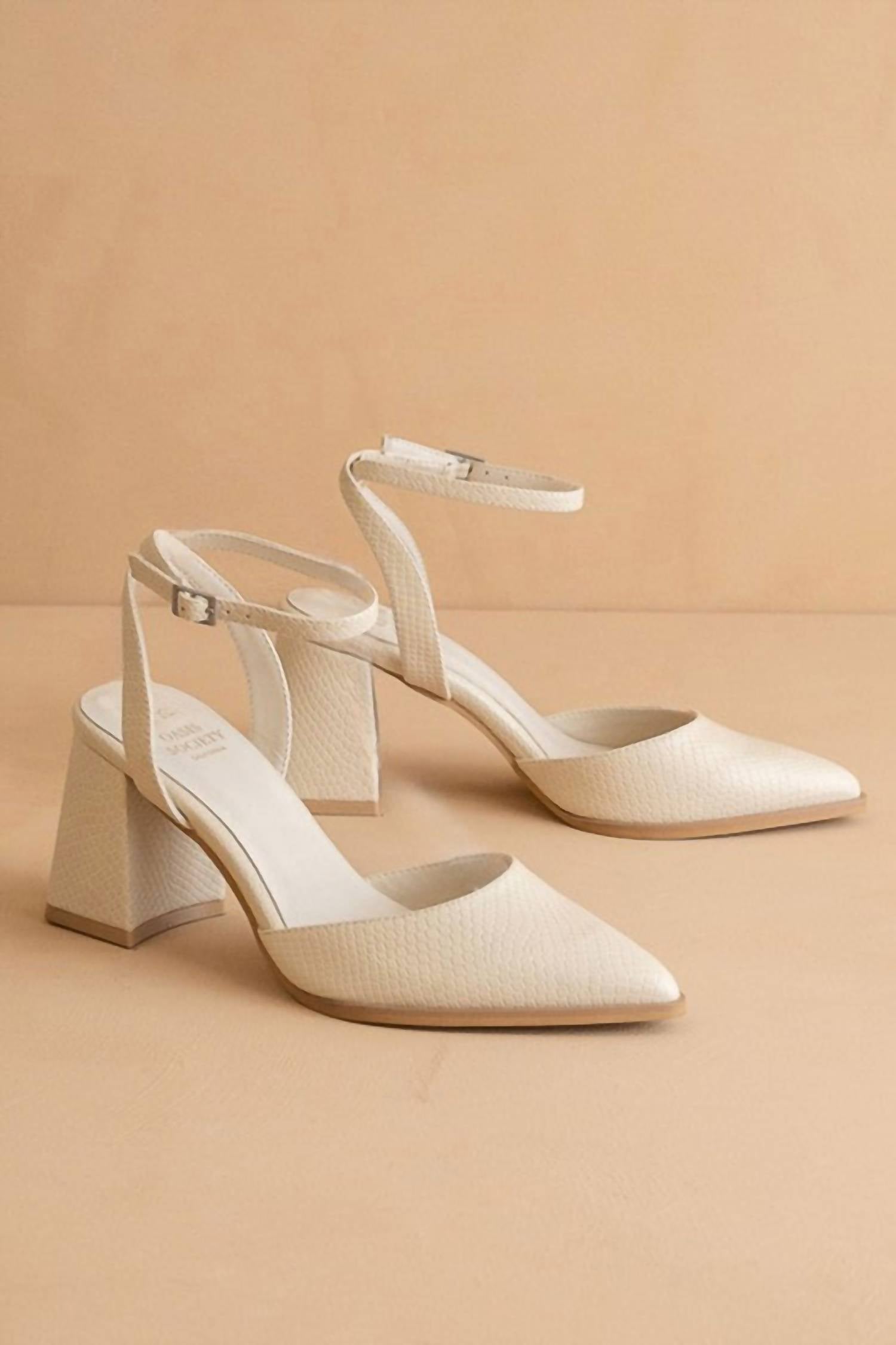Pair these beauties with your favorite skinny jeans or dress for a night out on the town. Step into elegance with the Women's Princess Ankle Strap Heels by Oasis Society, crafted to complement your summer wardrobe. The 3.5-inch block heel coupled with a pointed toe adds a touch of quiet luxury perfect for engagement occasions. Featuring a vegan leather upper, DreamCloud cushion insole, and a synthetic wrap heel, these heels ensure comfort and style. Closure: Buckle.