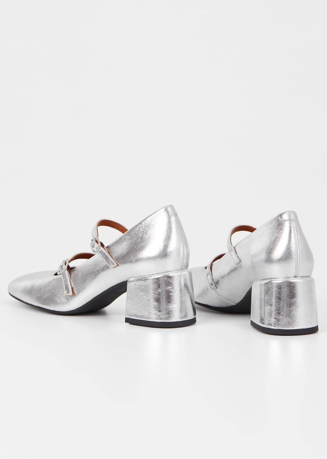 The perfect height for day to night. Elevate your festive ensemble with the Women's Adison Mary Jane Pump by Vagabond Shoemakers, crafted in silver-toned crinkled leather for a sophisticated touch. These stylish heels feature adjustable double straps with silver-toned buckles and rounded toes, offering both elegance and comfort. The solid block heels stand at a comfortable 55mm, ensuring you stay on your feet with ease. For optimal care, apply a neutral shoe cream and a protector spray to maintain their shine and longevity.