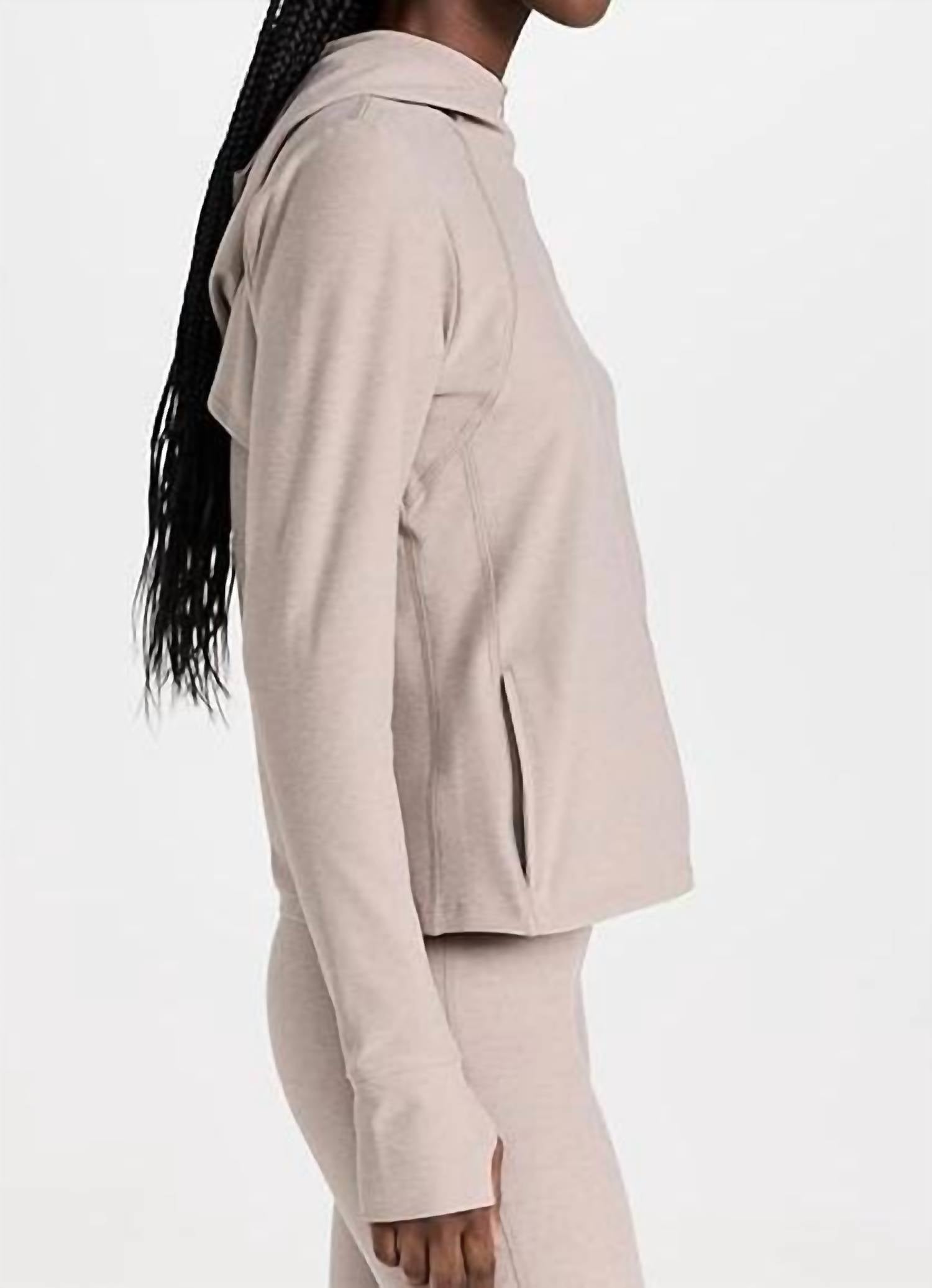 Enhance your workout wardrobe with the Spacedye High Energy Hoodie by BEYOND YOGA, crafted in a sleek Birch hue. This hooded activewear piece features long sleeves with practical thumbholes and a unique back mesh vent for optimal breathability. Composition: 87% Polyester, 13% Elastane. Designed in the USA with a zip closure, this women's hoodie boasts side pockets. Care: Hand wash for best results.