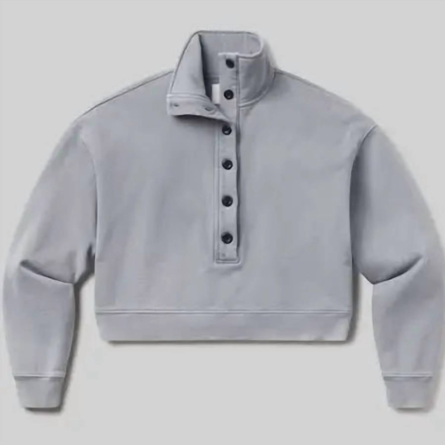 Introducing the Mirelle Funnel Neck Pullover by Citizens of Humanity, crafted with long sleeves and a refined mockneck design. Made from breathable soft cotton fleece, this pullover offers a delightful blend of comfort and stretch, making it your go-to piece for fall festivities. The shirt hails from a solid color pattern in a beautiful hematite shade, perfect for streetwear-inspired evening events. It features a deep button closure and is easy to care for with machine wash and tumble dry instructions.